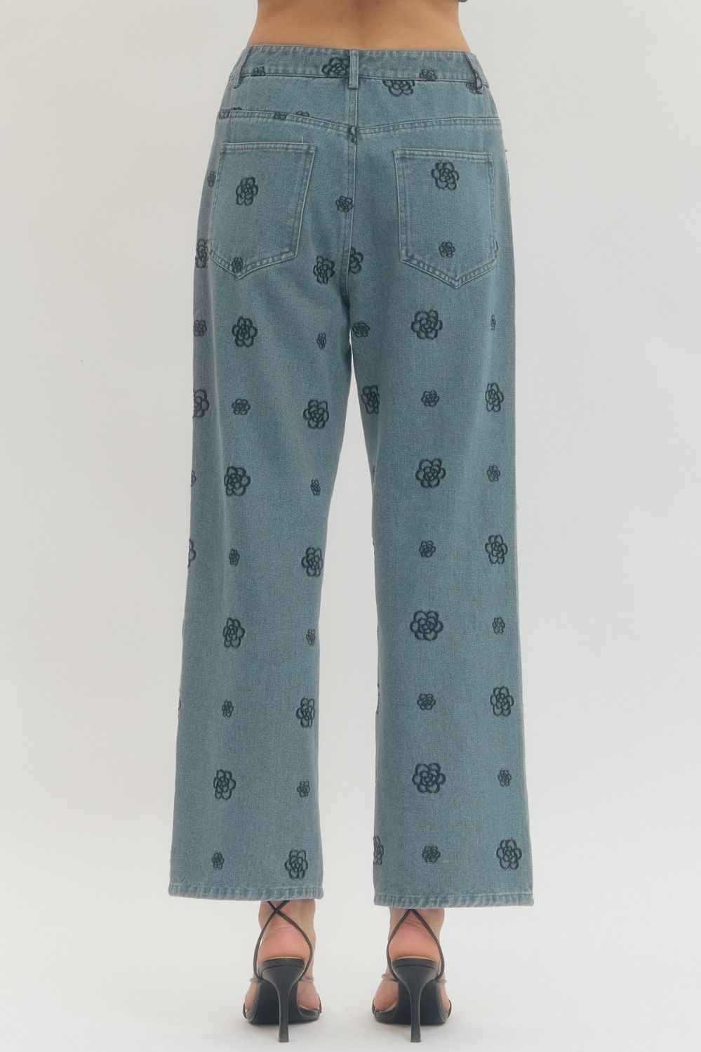 The Statement Bloom Denim features a flattering wide leg silhouette with an allover floral print that instantly upgrades any outfit. They’re structured, bold, and made to stand out — but still easy enough to wear on repeat.