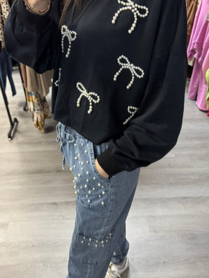 Pearl Detail Jeans - Black