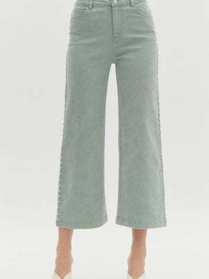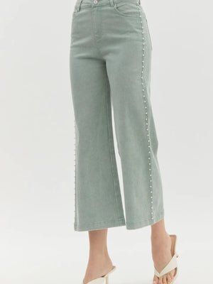 Pearl Detail Jeans - Seafoam
