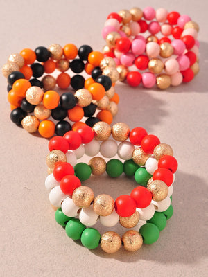 Metal Ball Beaded Stretch Bracelet Set
