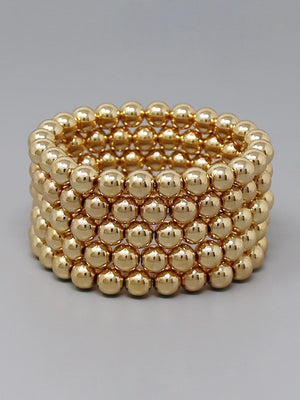 Metal Ball Beaded Stackable Elastic Bracelet Set