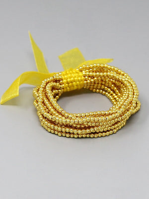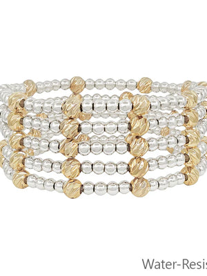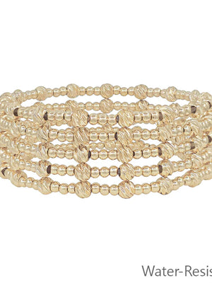 Water Resistant Gold 3mm Beaded Set of 5 Stretch Bracelets with Gold Accent Bead