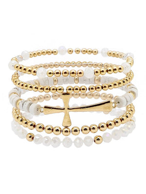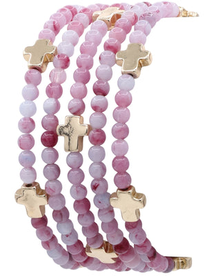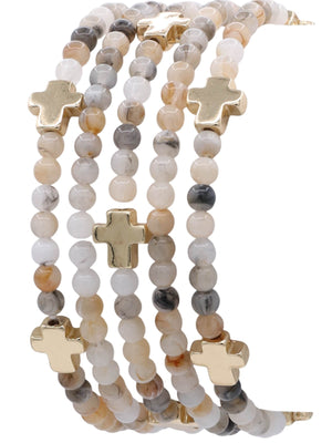 Cross Marble Bead Multi-stack Stretch Bracelet