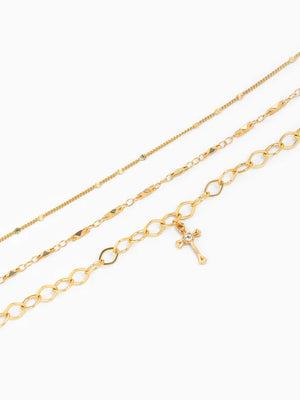 Cross Gold Bead Bracelet - Set of 3