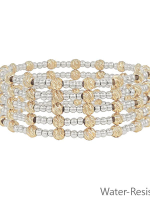 Water Resistant Textured Beaded Set of 5 Stretch Bracelets