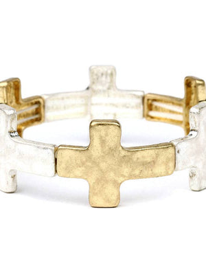 Worn Gold and Silver Cross Stretch Bracelet