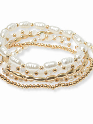 Gold and Pearl Beaded Bracelet Stack | LULU MAC