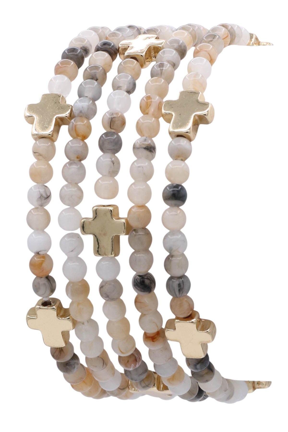 Cross Marble Bead Multi-stack Stretch Bracelet