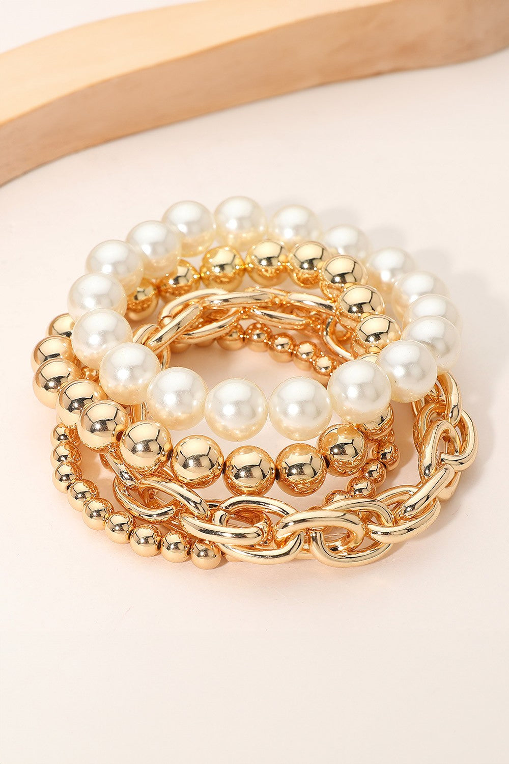 Pearl Metal Ball Mixed Stretch Bracelets - 4PC
