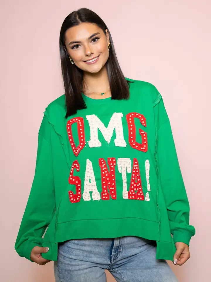 Santa! | Women's Distressed Embroidery Pullover
