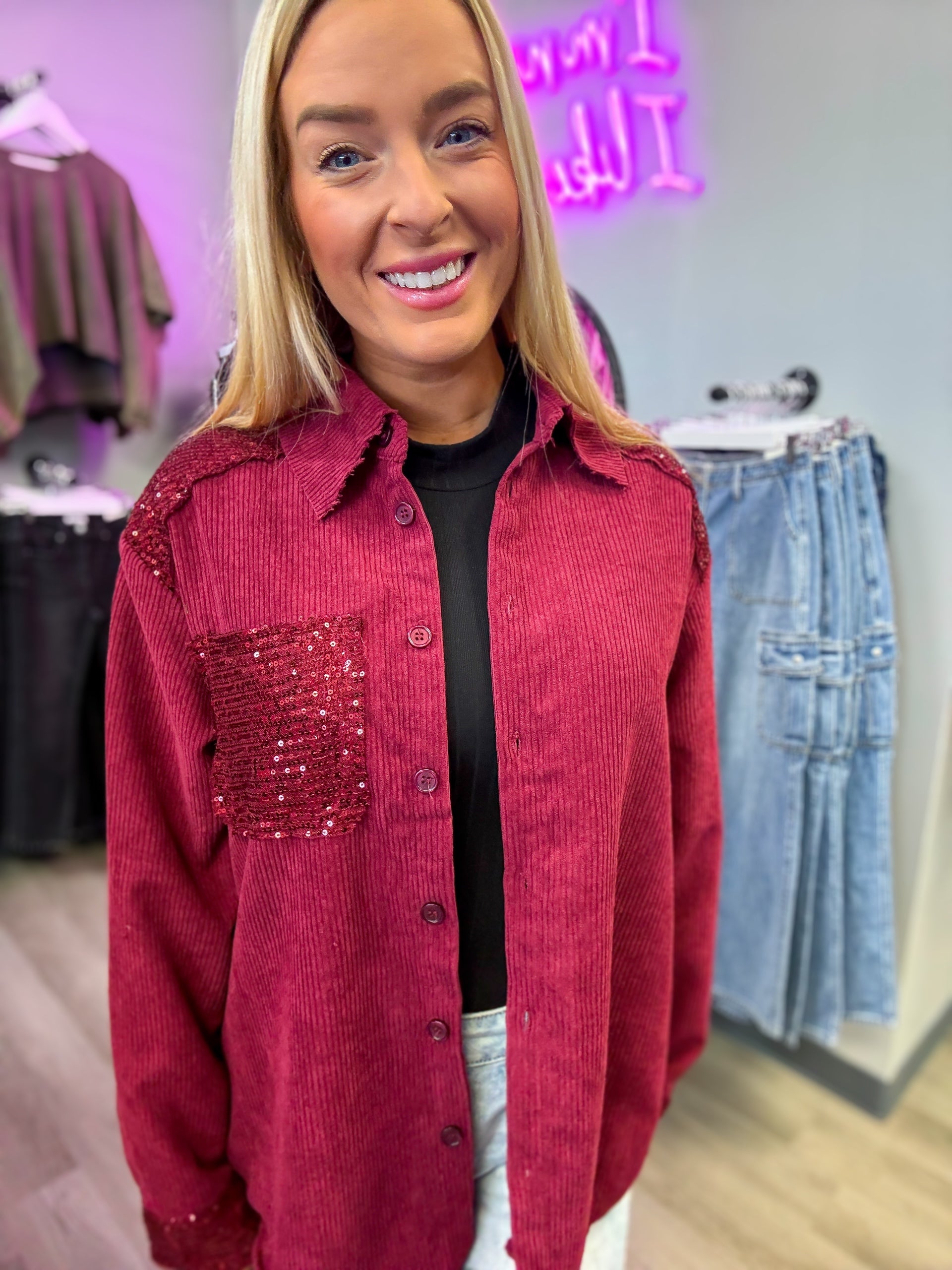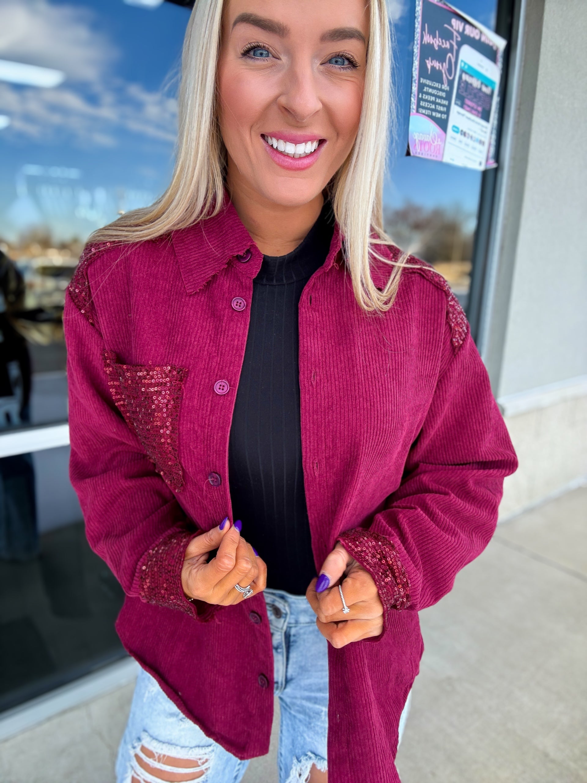 Look stylish and make a statement with this eye-catching Sequin Collared Button Down Shacket! Ideal for special occasions, the unique design and eye-catching sequins make this timeless piece so fun for the holidays. Easily wear it alone as a shirt or layer it over for warmth - it's a versatile style you'll love for years to come!