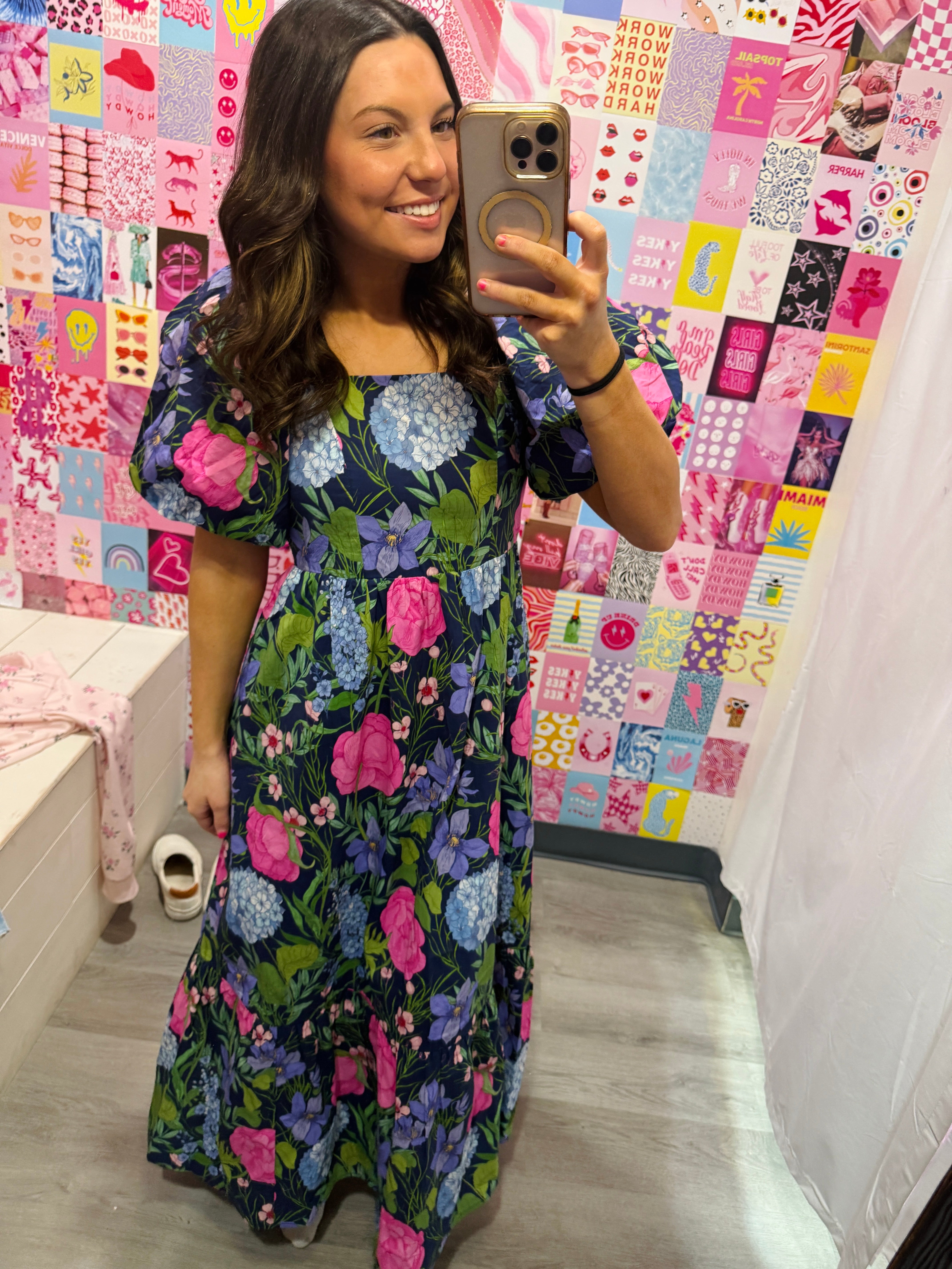 This is the kind of dress you wear when you want to feel confident the second you walk in. ✨ The bold floral print makes a statement without feeling overdone, and that square neckline gives it that flattering, structured look we love.