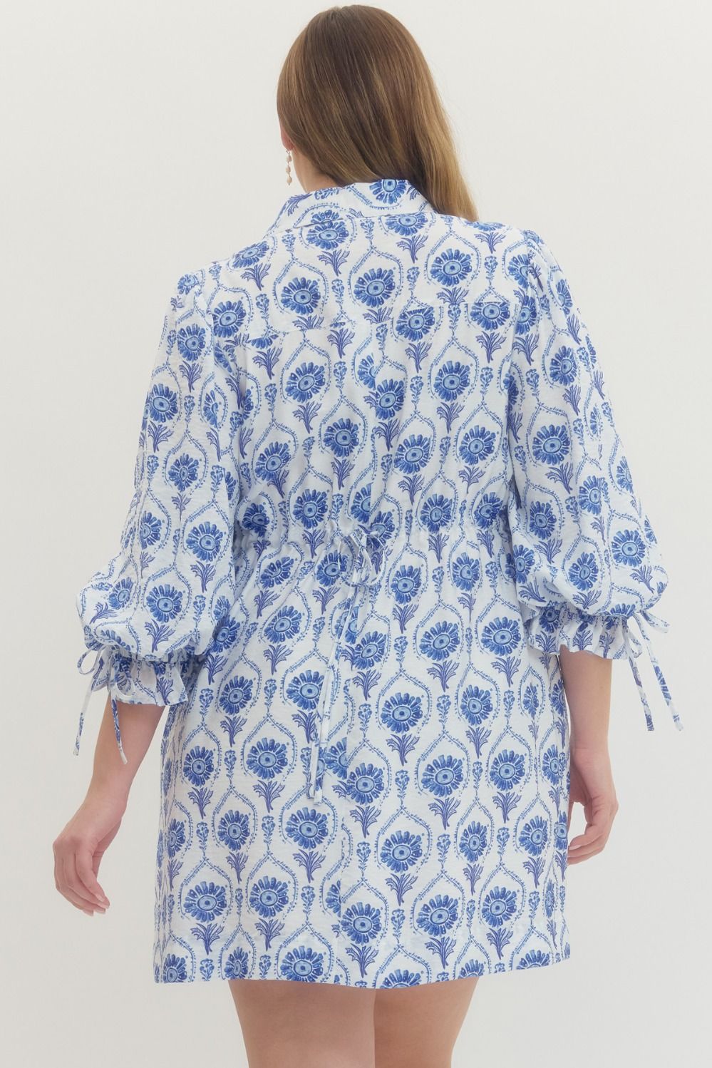 This dress is effortlessly chic with the prettiest blue and white print. The relaxed silhouette keeps it easy and breathable, while the statement sleeves with tie details add that extra boutique touch. We love the adjustable tie at the back that lets you cinch it in for shape or wear it loose and flowy. Perfect for brunch, vacation, showers, or just feeling cute on a regular Tuesday.