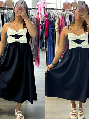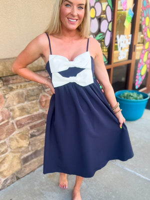 Double Bow Navy Midi Dress