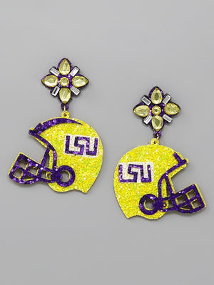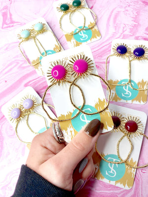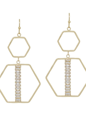 Gold Double Hexagon with Crystal Bar Accent 2" Earring