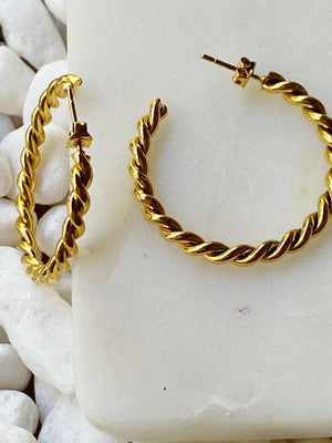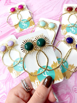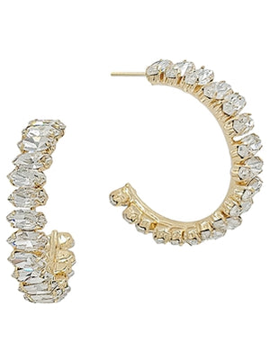 Gold Hoop with Clear Baguettes 1" Earring - Clear