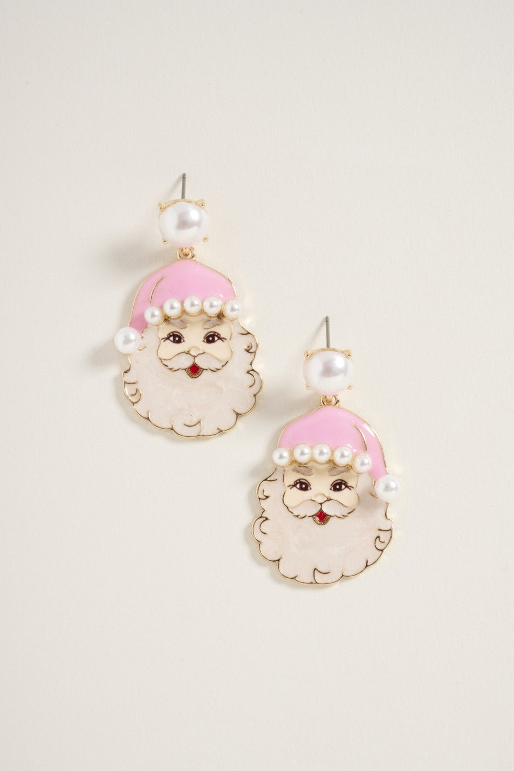 Christmas Santa Claus Face W Pearls Post Earrings