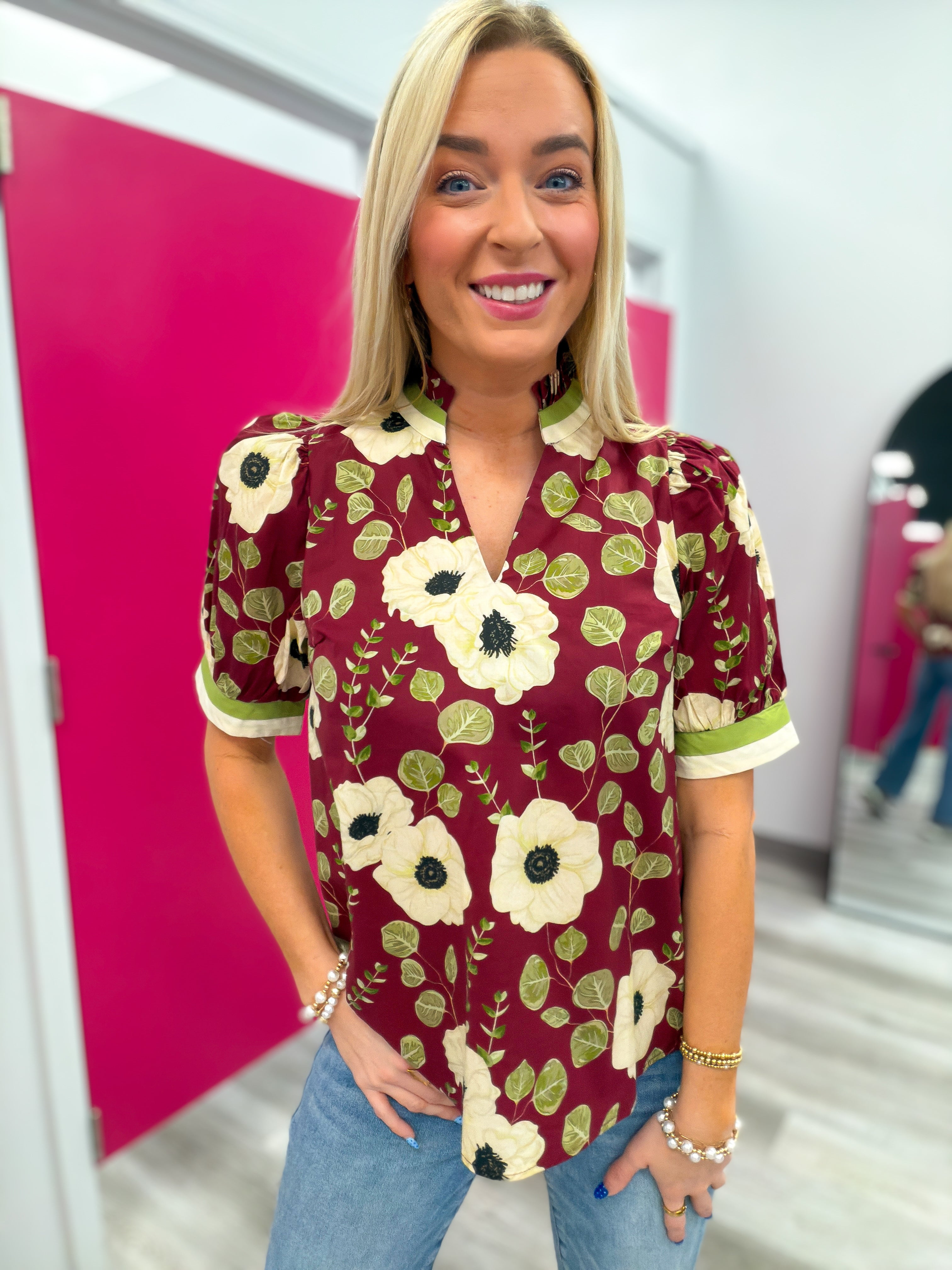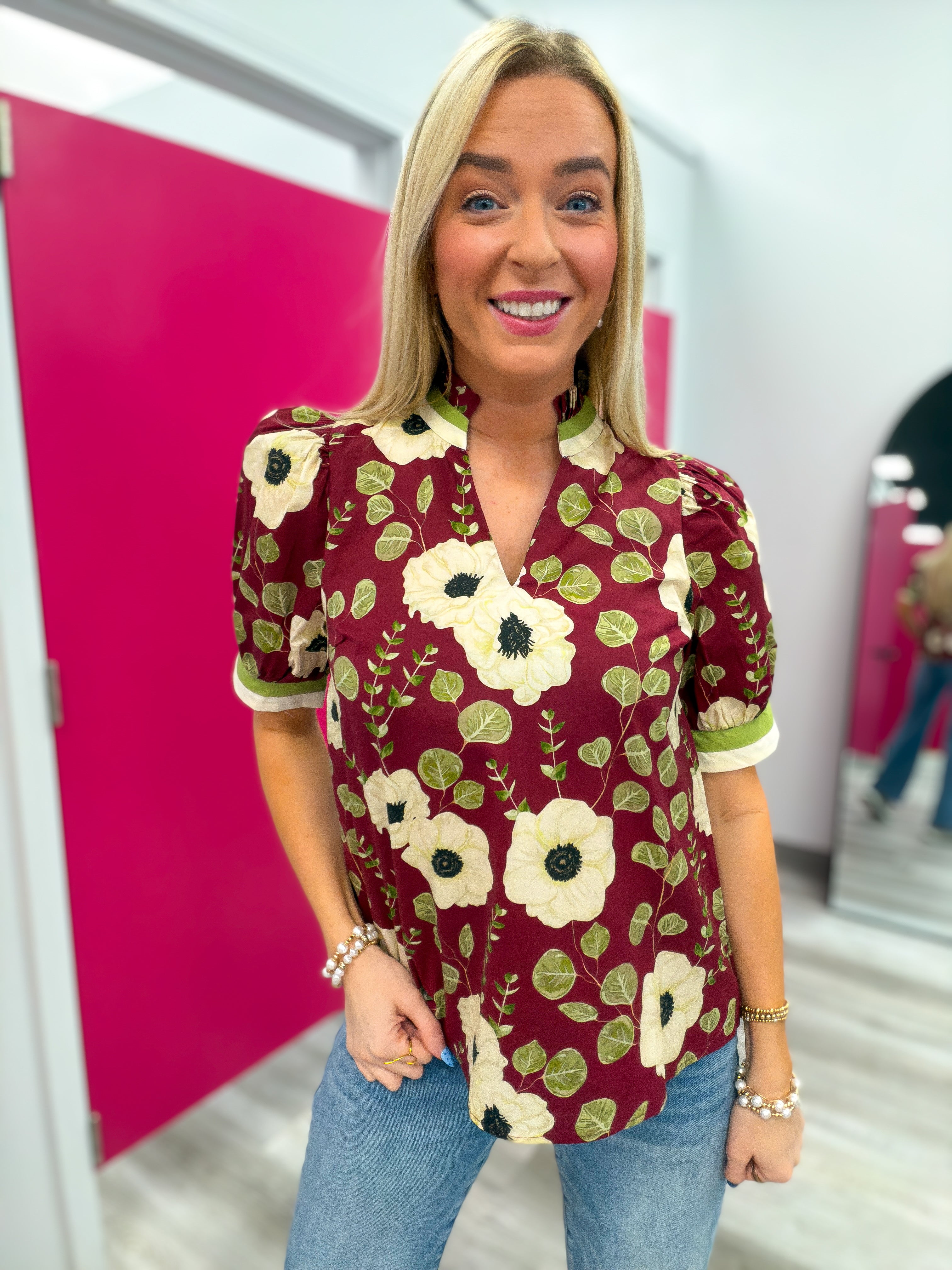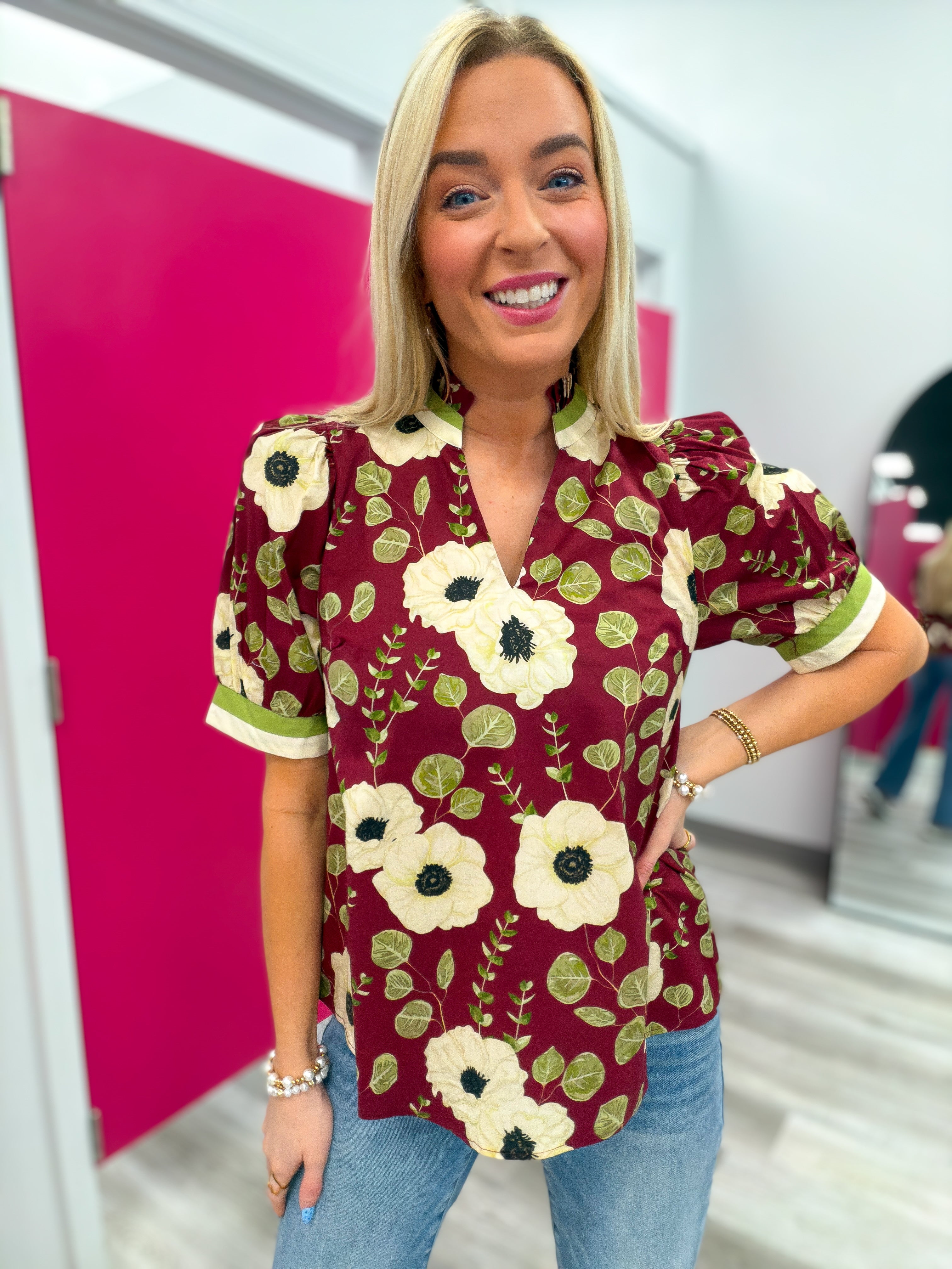 A Change in the Season Floral Burgundy Top