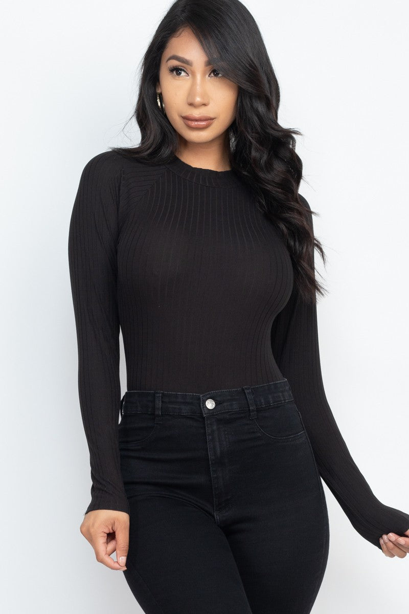 Ribbed Long Sleeve Mock Neck Bodysuit | ONLINE ONLY