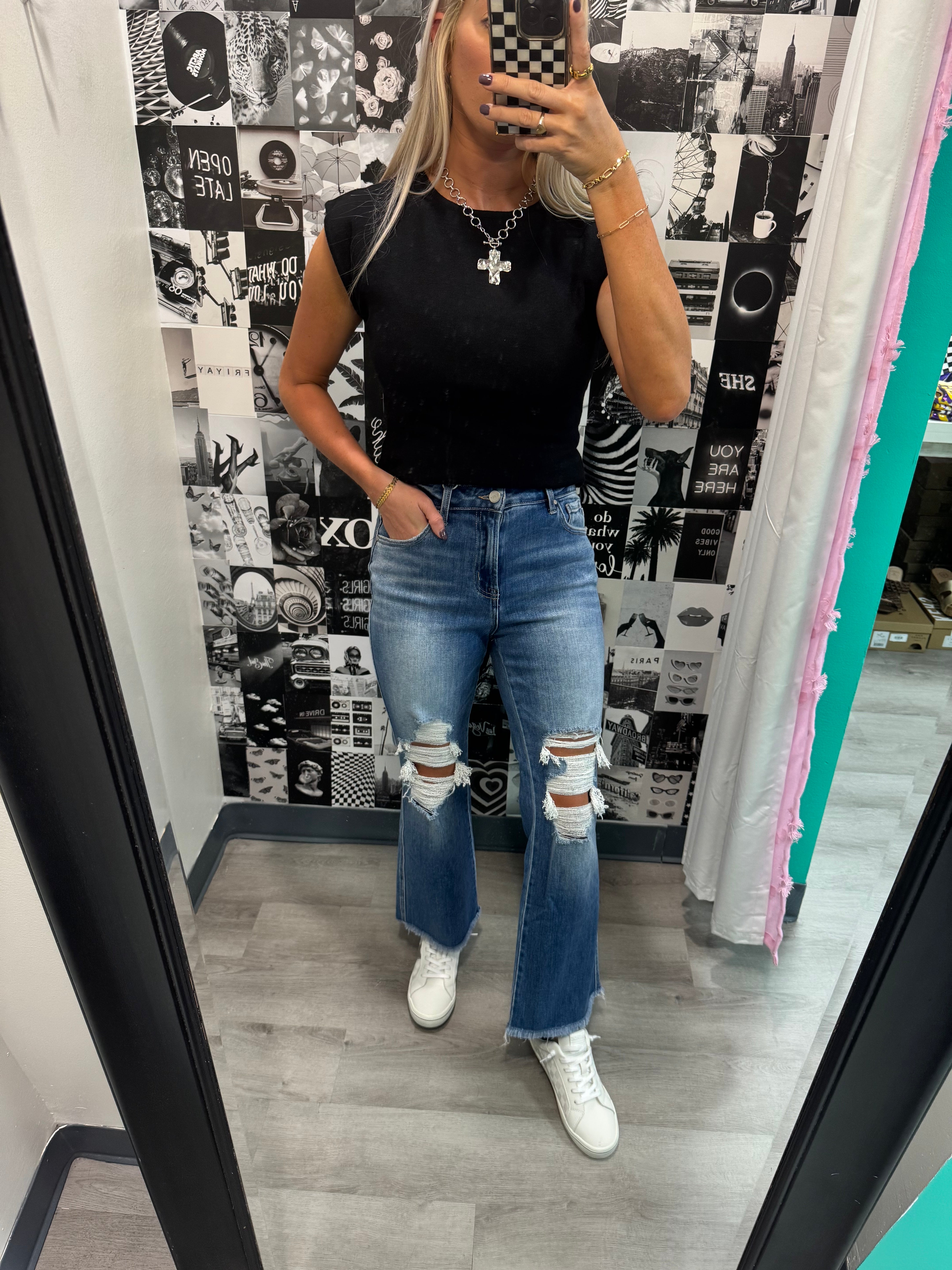 Introducing the perfect pair of jeans - The Sunny Jeans! These ankle flares are versatile and stylish, making them perfect for any occasion. Never worry about finding the perfect fit again with these comfortable and trendy jeans. Upgrade your wardrobe with The Sunny Jeans today!