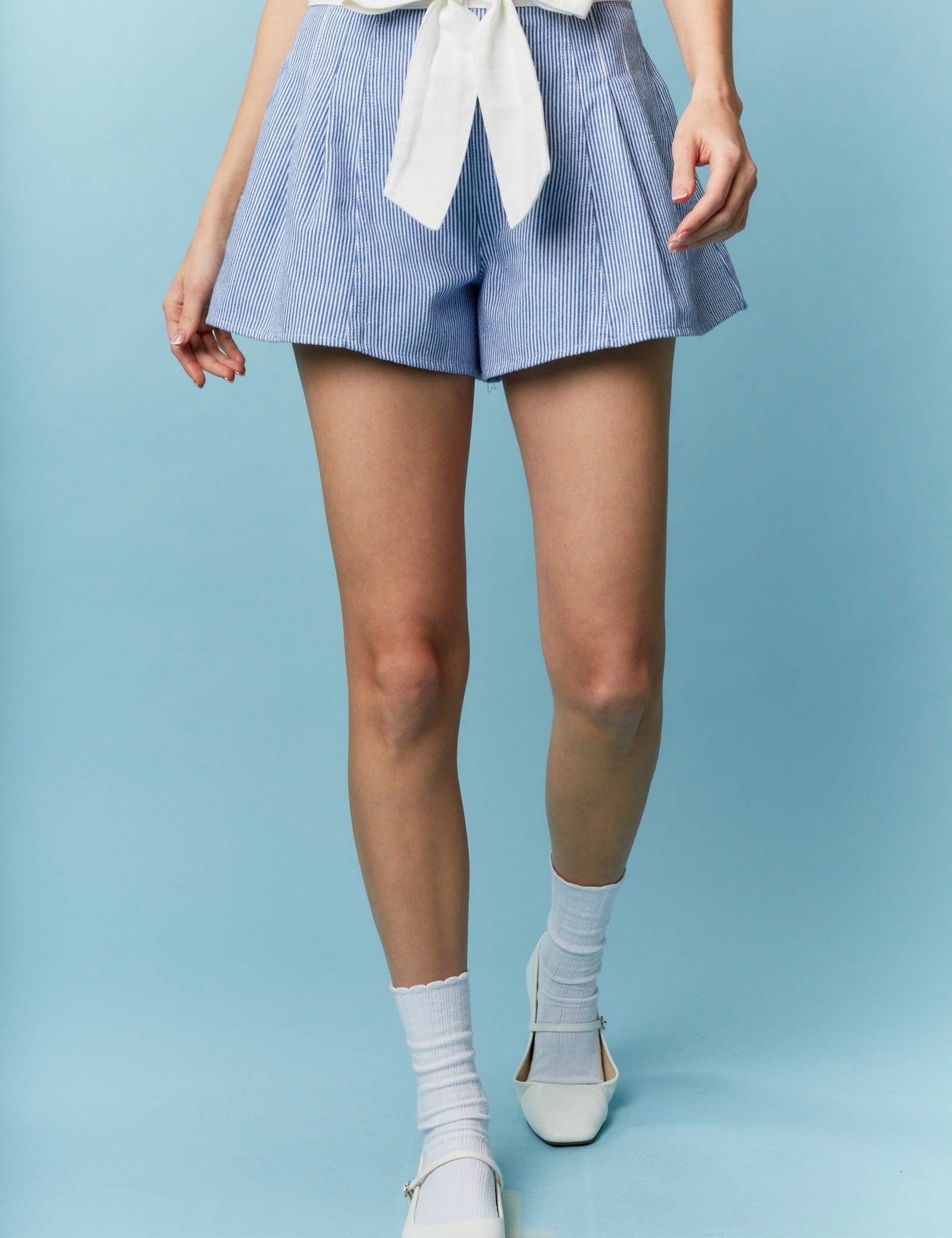 Solid Waist Band With Bow Detail Stripe Shorts
