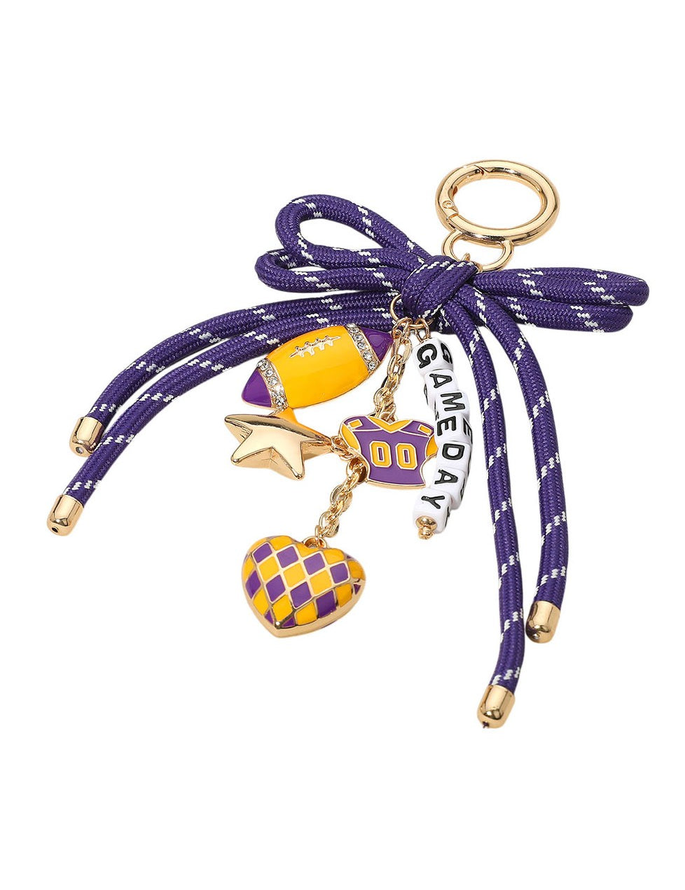 Gameday Theme Ribbon Bow Key And Boot Charm Purple White