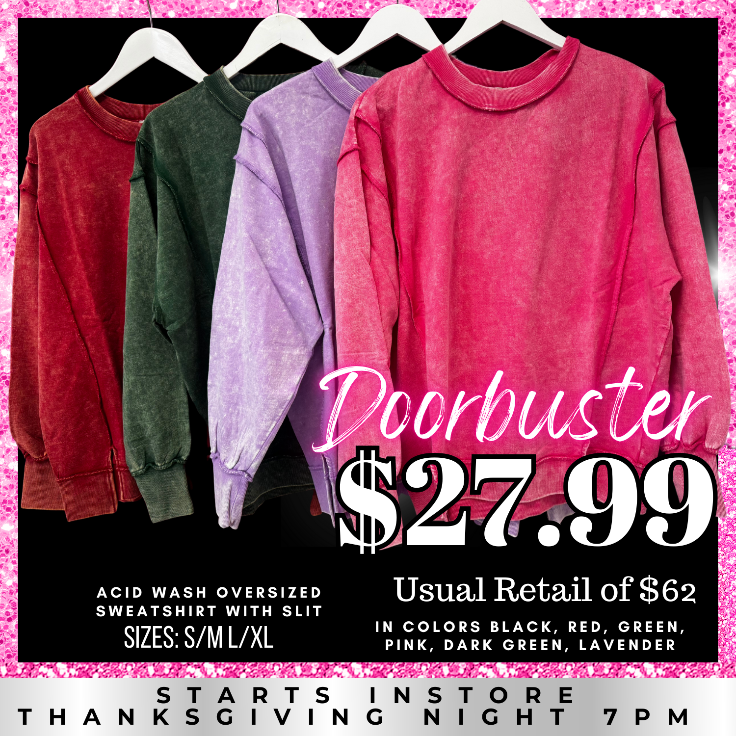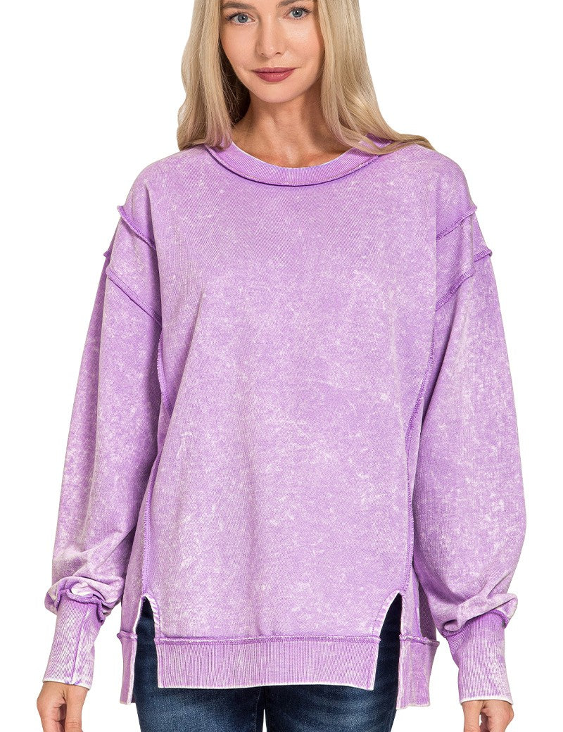 BLACK FRIDAY | Acid Wash F/terry Exposed-seam Sweatshirt TW-5249A