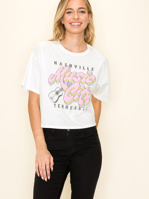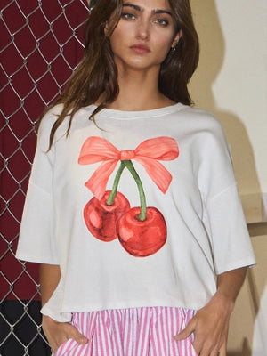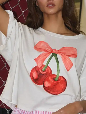 Cherry and Ribbon Graphic Jersey Boxy Crop Top