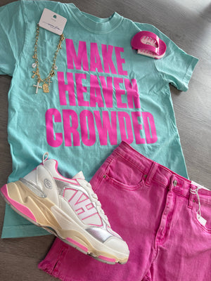 Acid Wash Roll-cuff Short Sleeve Crop Top