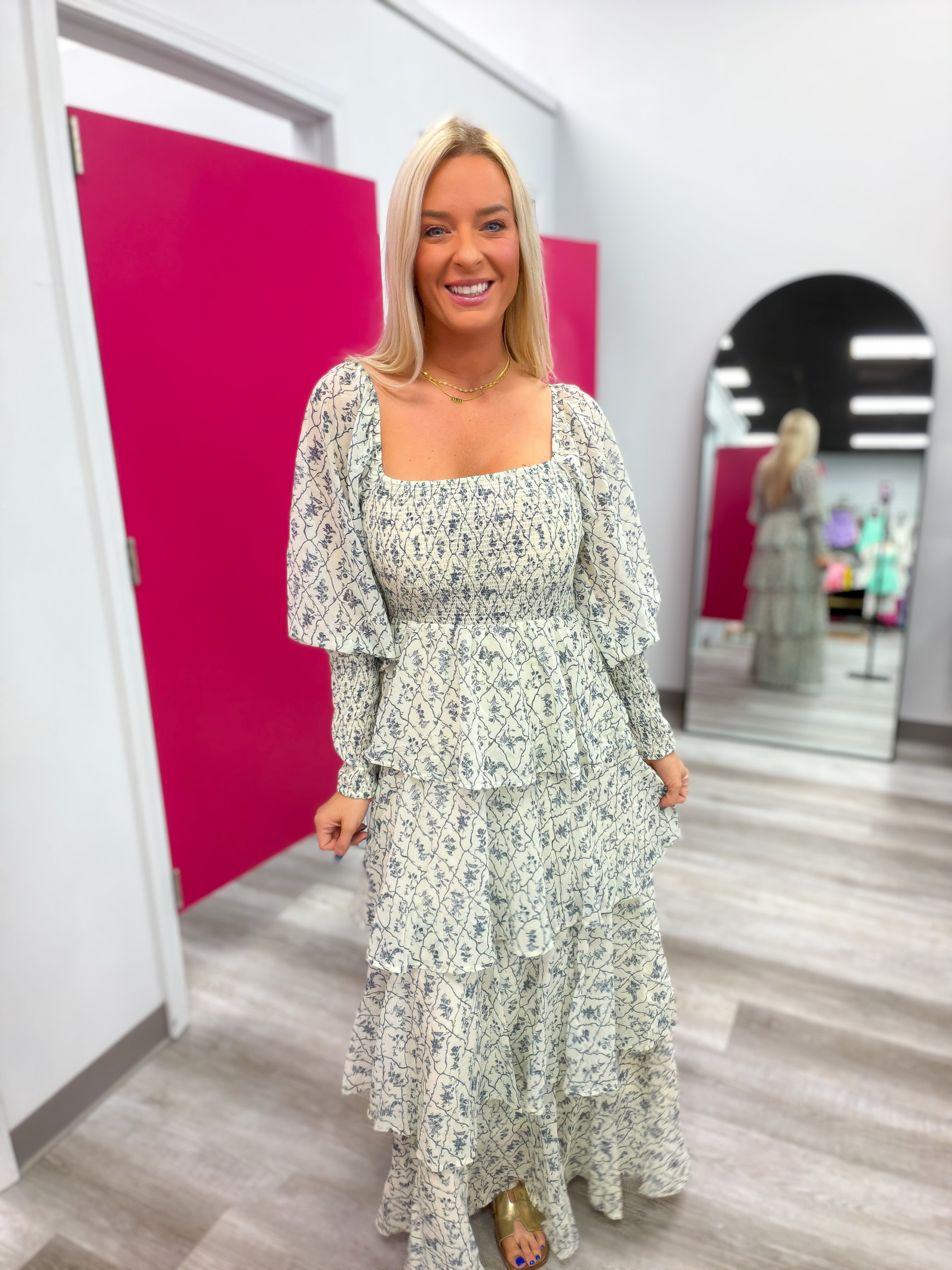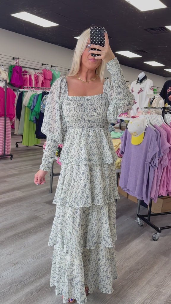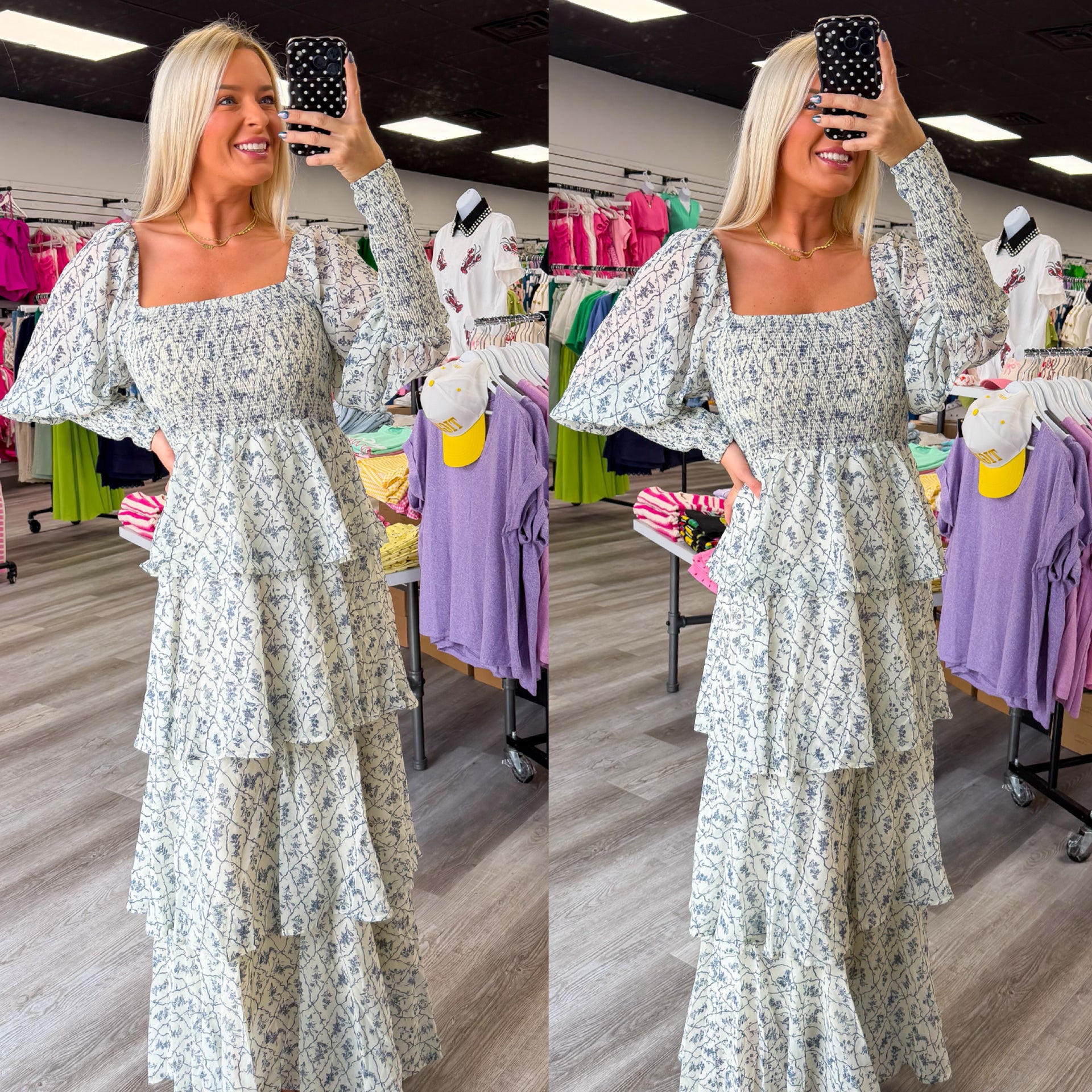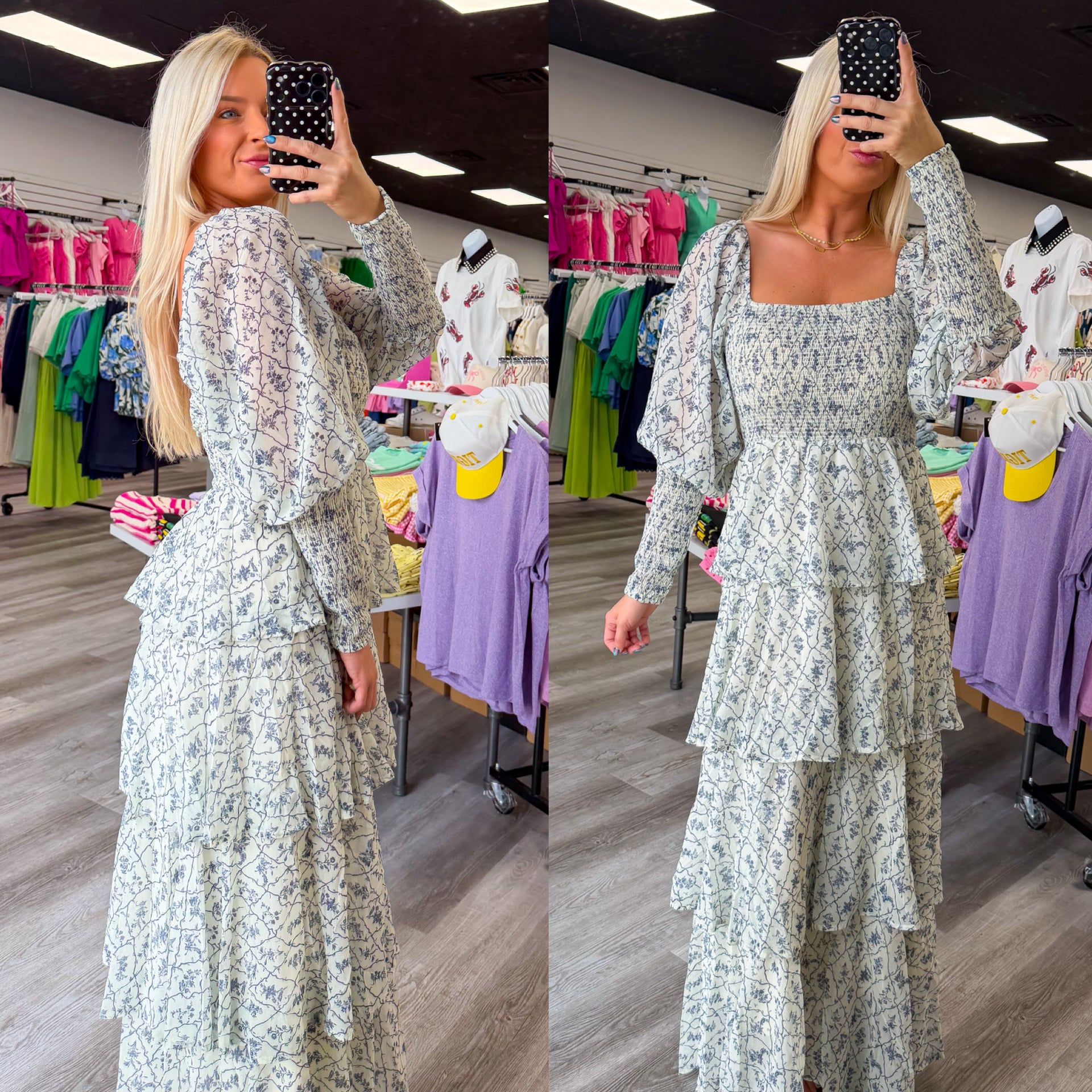 Elevate your style with our Perfect For You Floral Maxi Dress. With a printed design and long sleeves, this square neck dress exudes a bohemian charm. The smocking at the bust and cuff adds a touch of texture, while the lightweight woven fabric keeps you comfortable. Unleash your inner goddess in this semi-sheer, tiered maxi dress.
