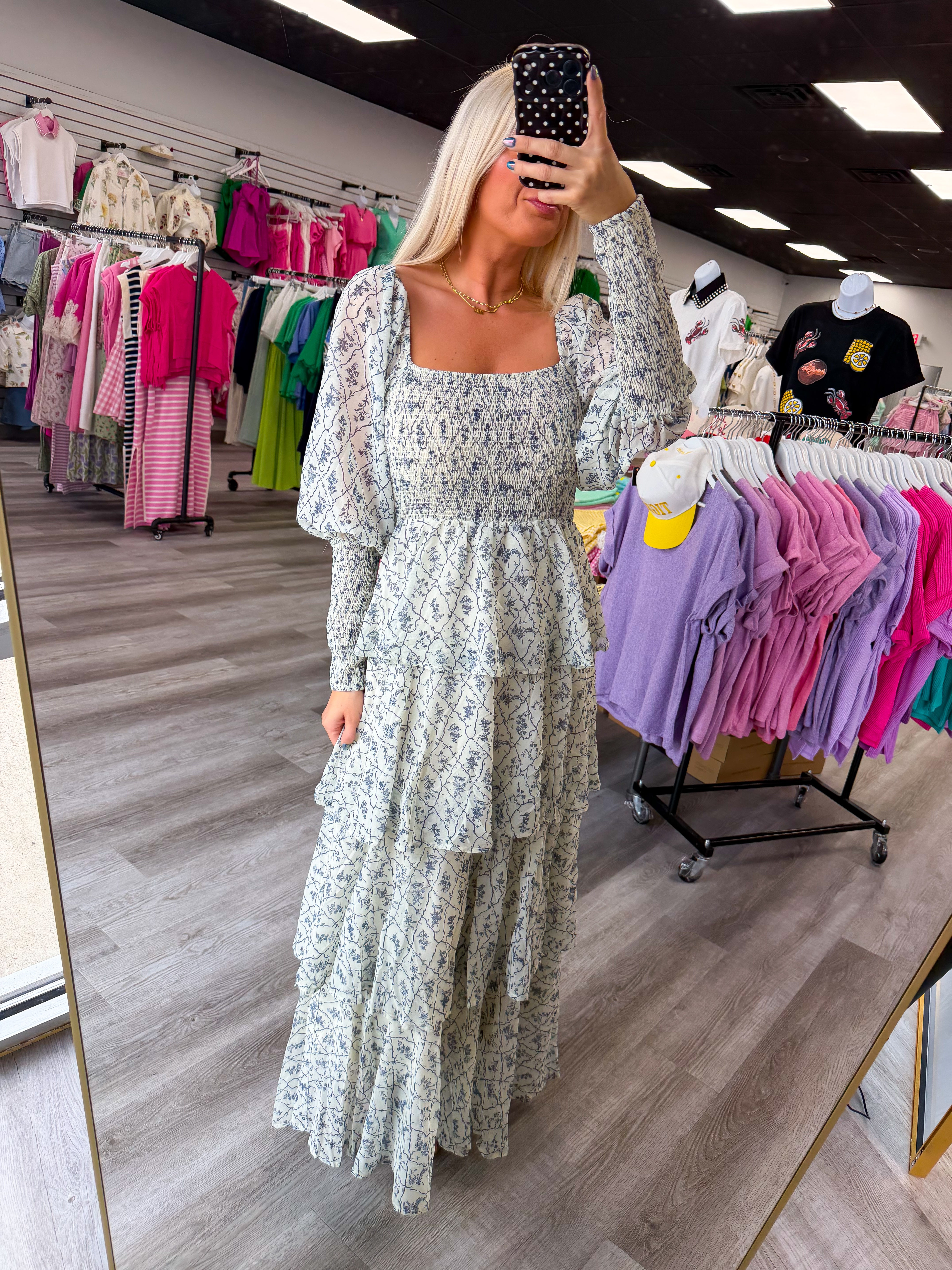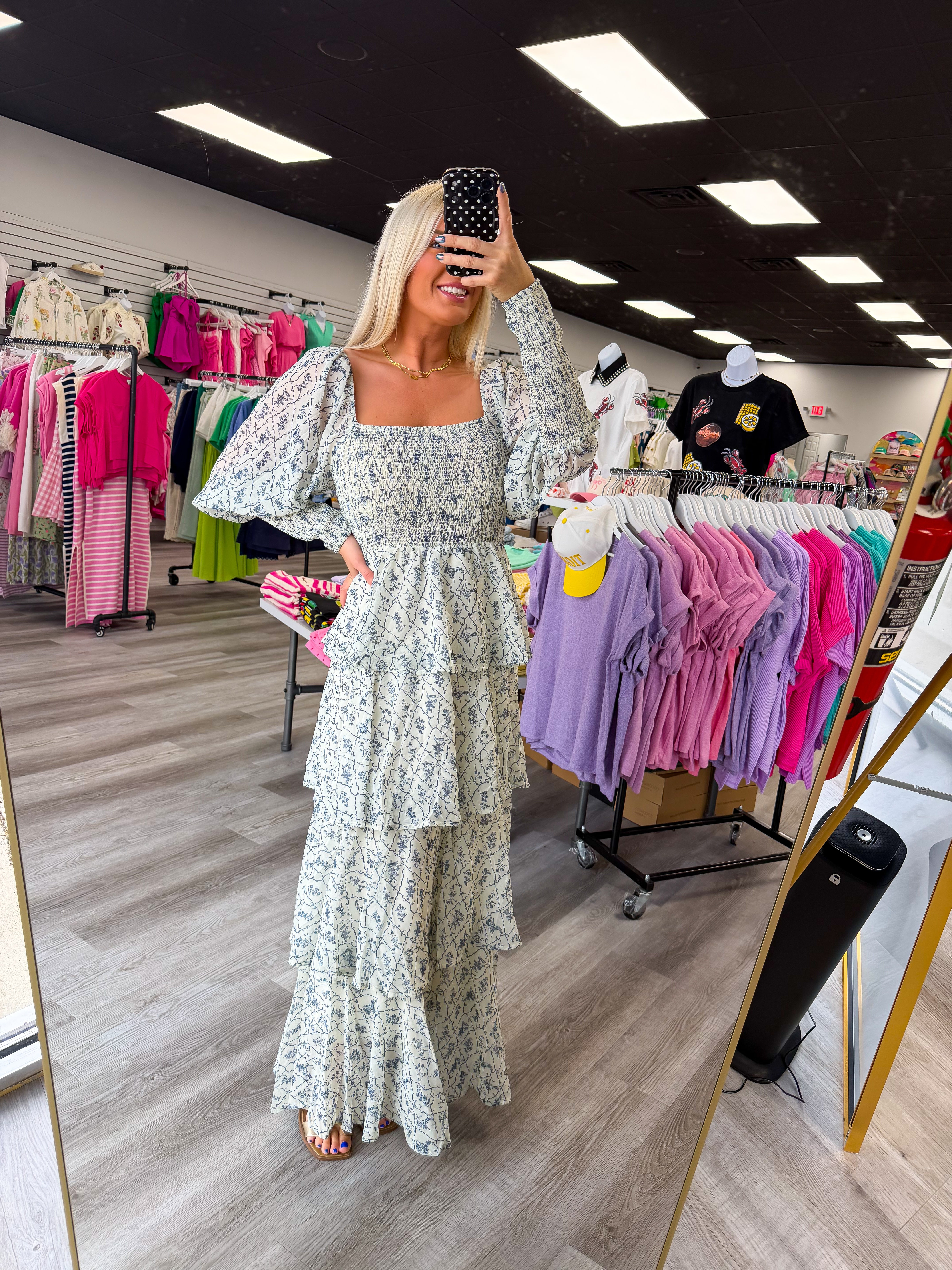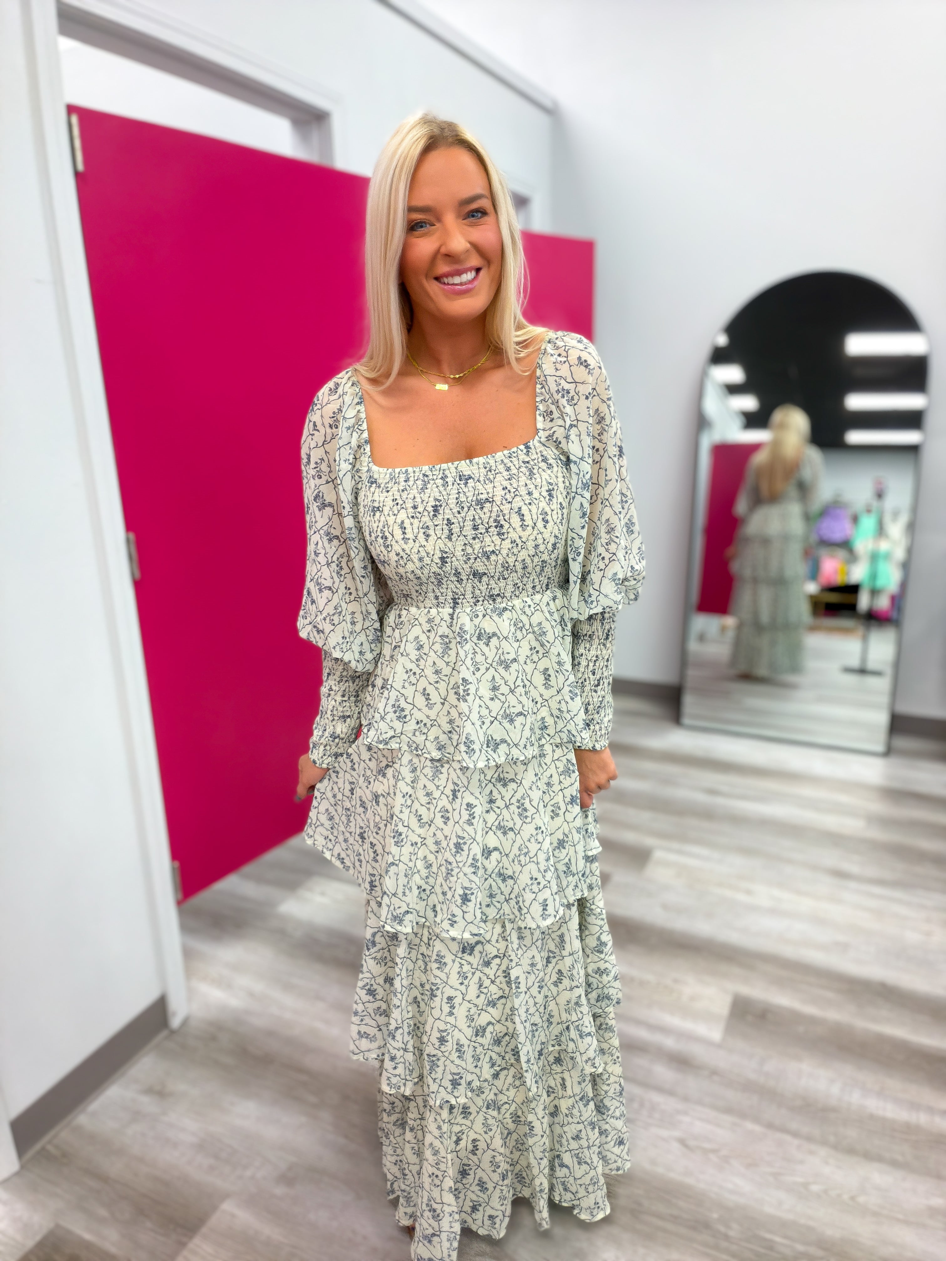 Elevate your style with our Perfect For You Floral Maxi Dress. With a printed design and long sleeves, this square neck dress exudes a bohemian charm. The smocking at the bust and cuff adds a touch of texture, while the lightweight woven fabric keeps you comfortable. Unleash your inner goddess in this semi-sheer, tiered maxi dress.