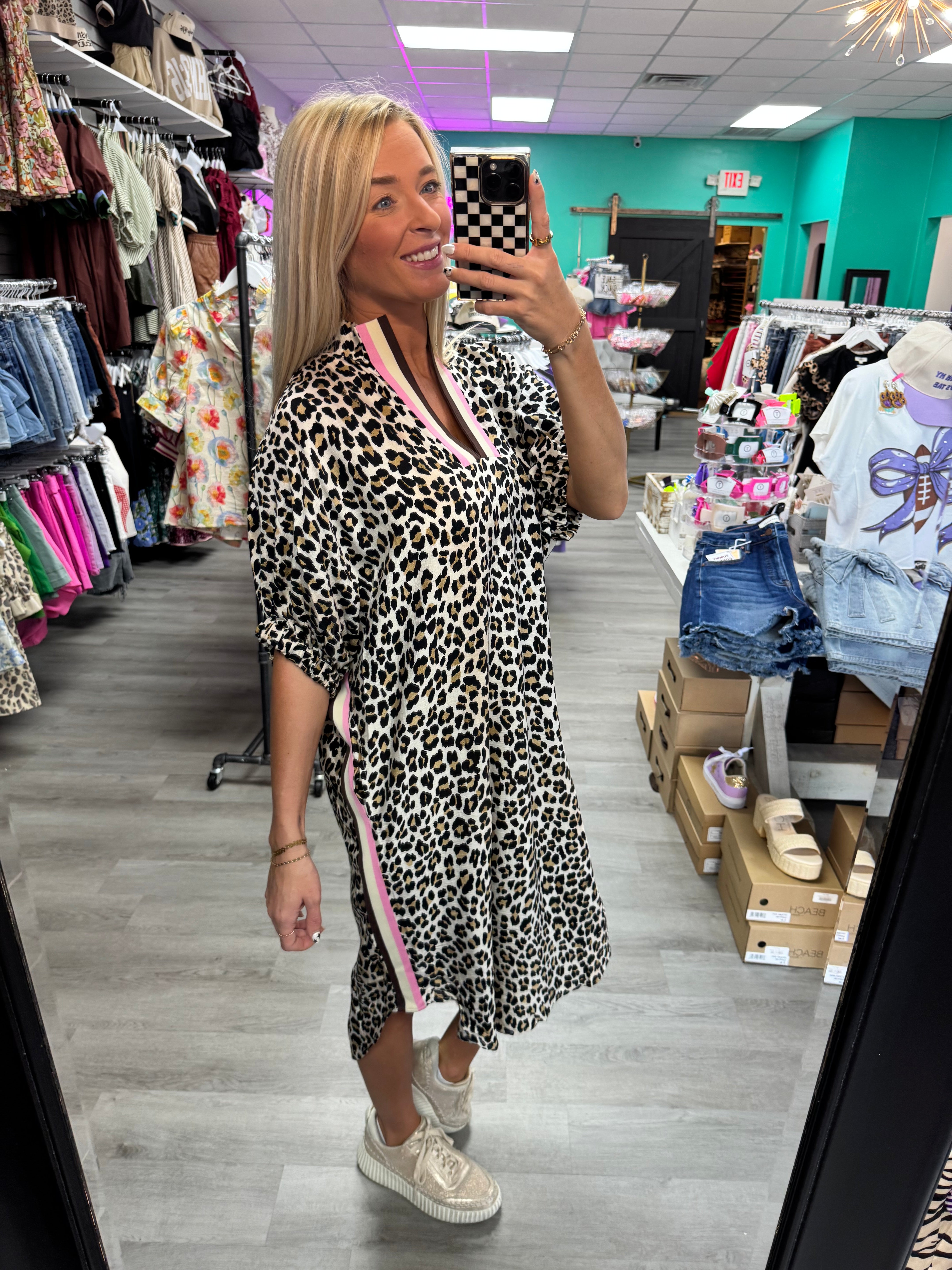 Leopard lovers, this one’s for YOU 🐆✨ Comfy, easy, and so fun with the pink stripe detail! Bonus—she comes all the way up to 2X 🙌🏼👏🏼 Perfect with sneakers for an effortless throw-on-and-go look!