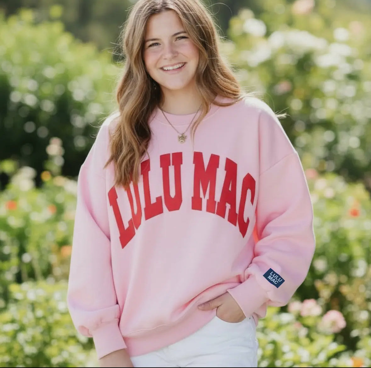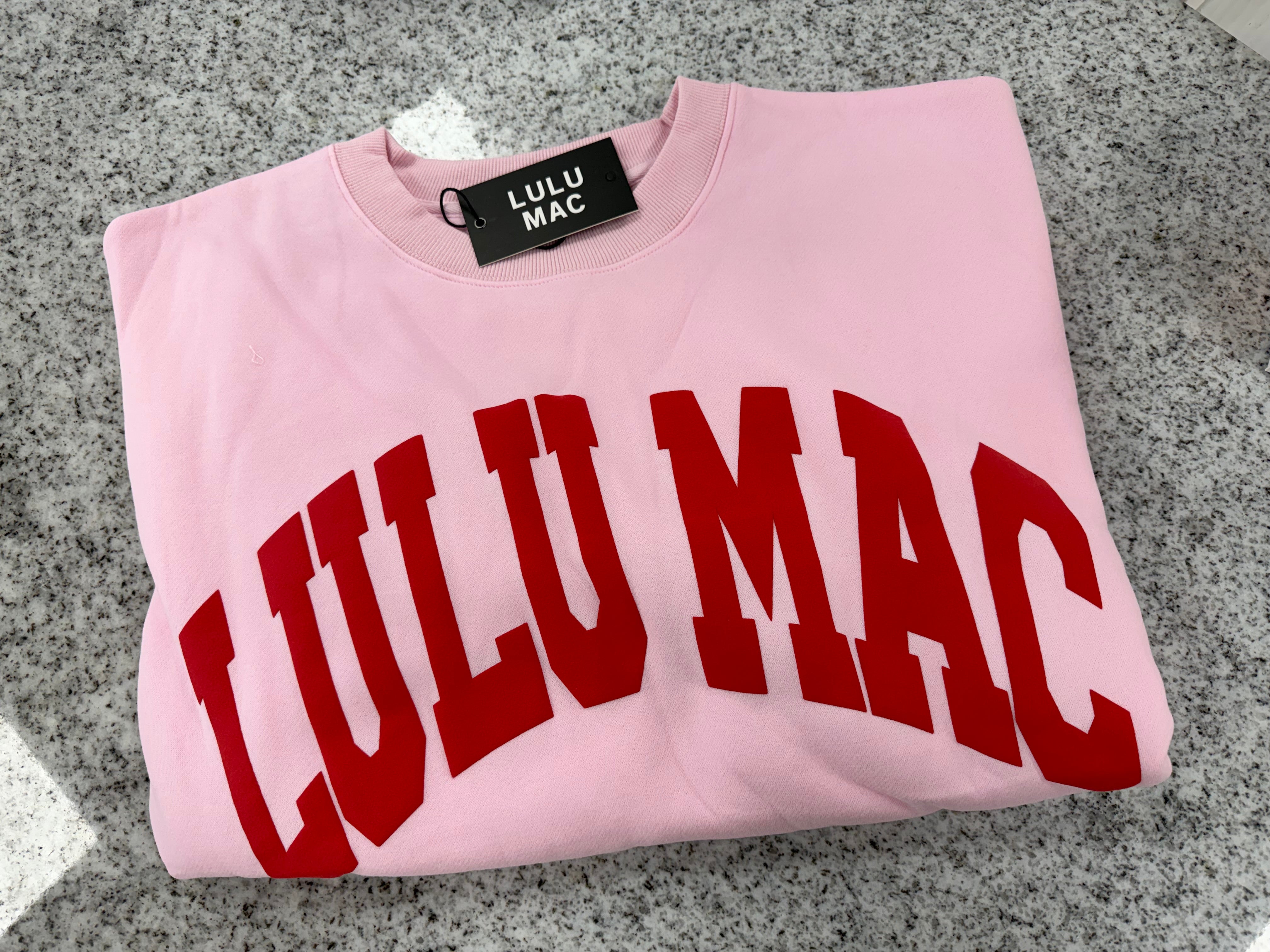 Red & Baby Pink Puff Letter Sweatshirt | LULU MAC