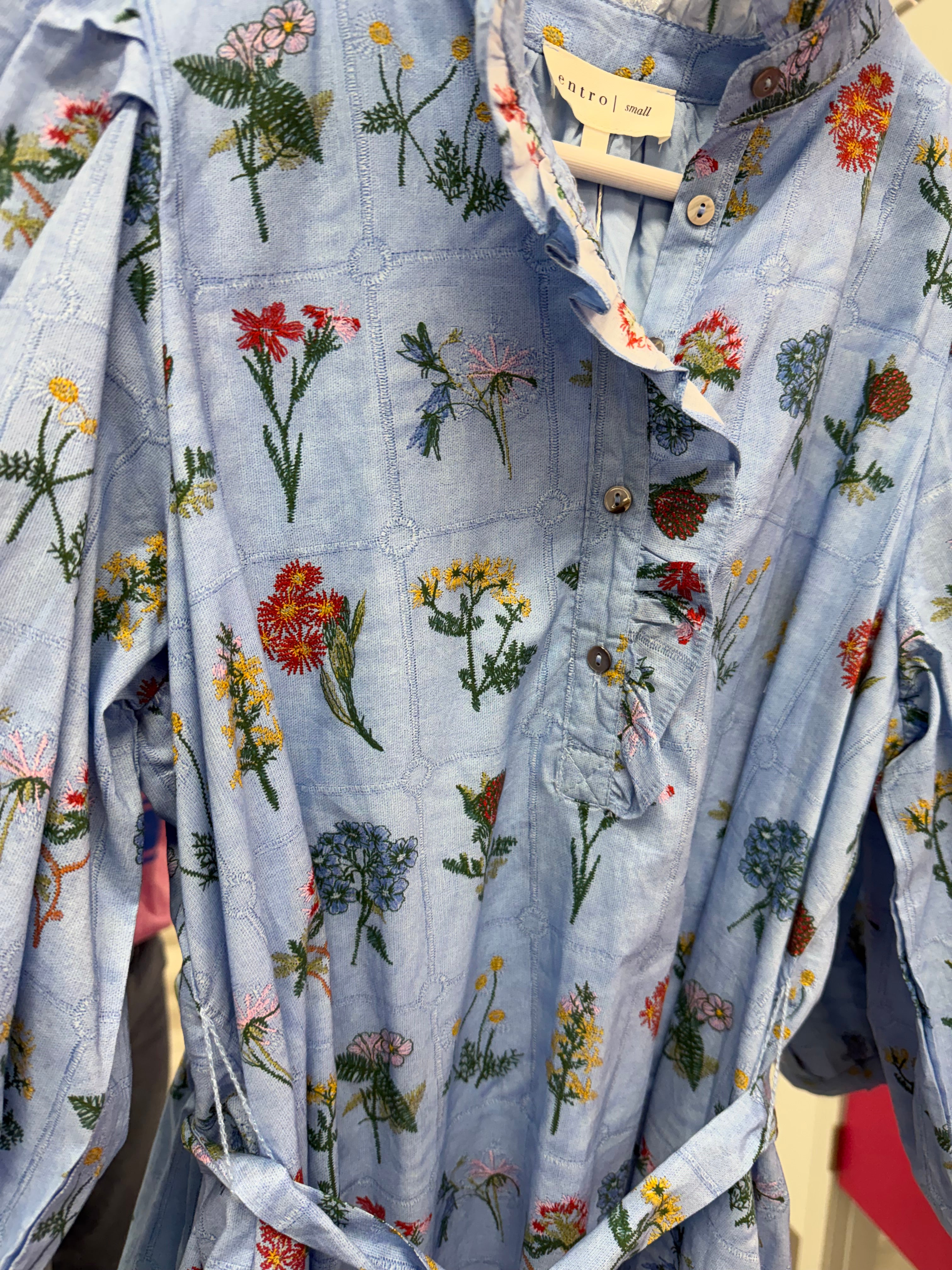 Ruffle trim along the button front
