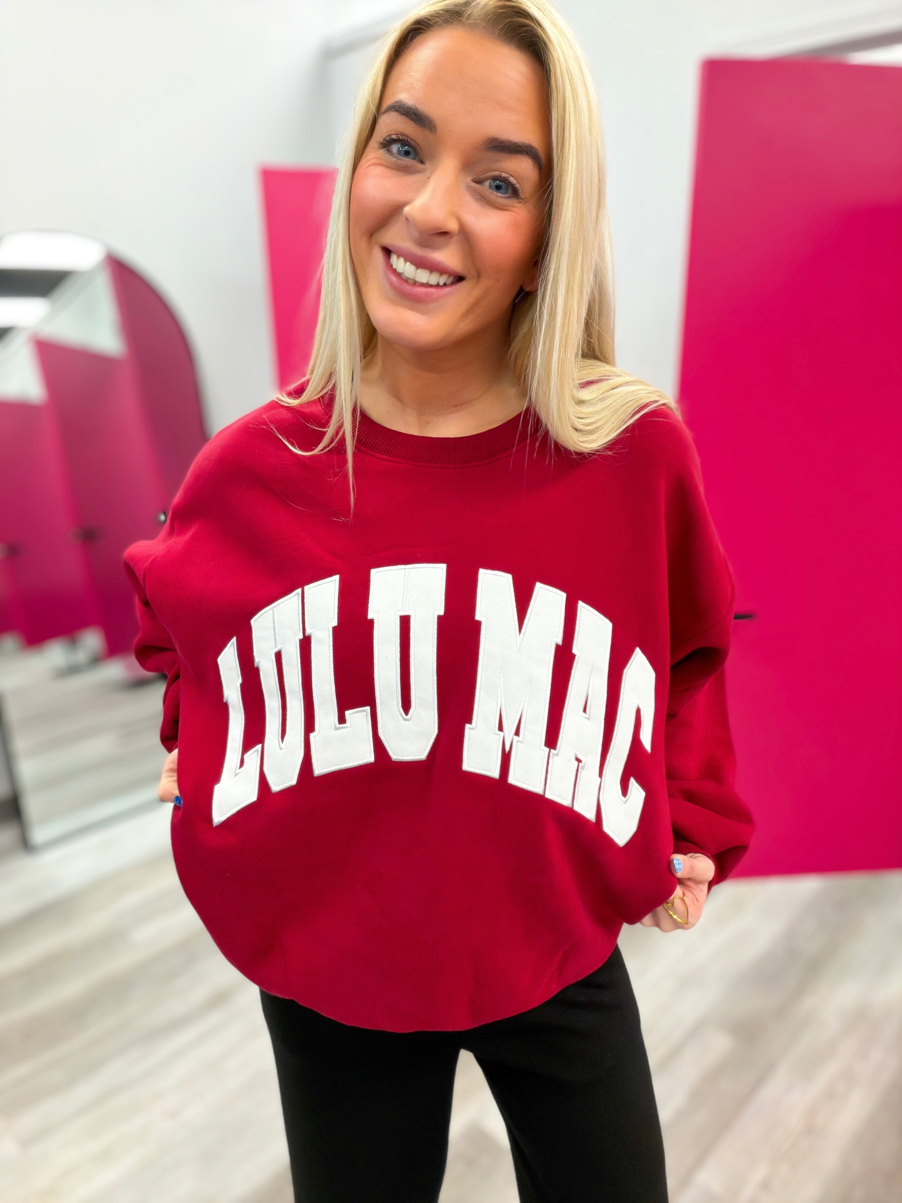 Crimson and White Lulu Mac Embroidery Sweatshirt