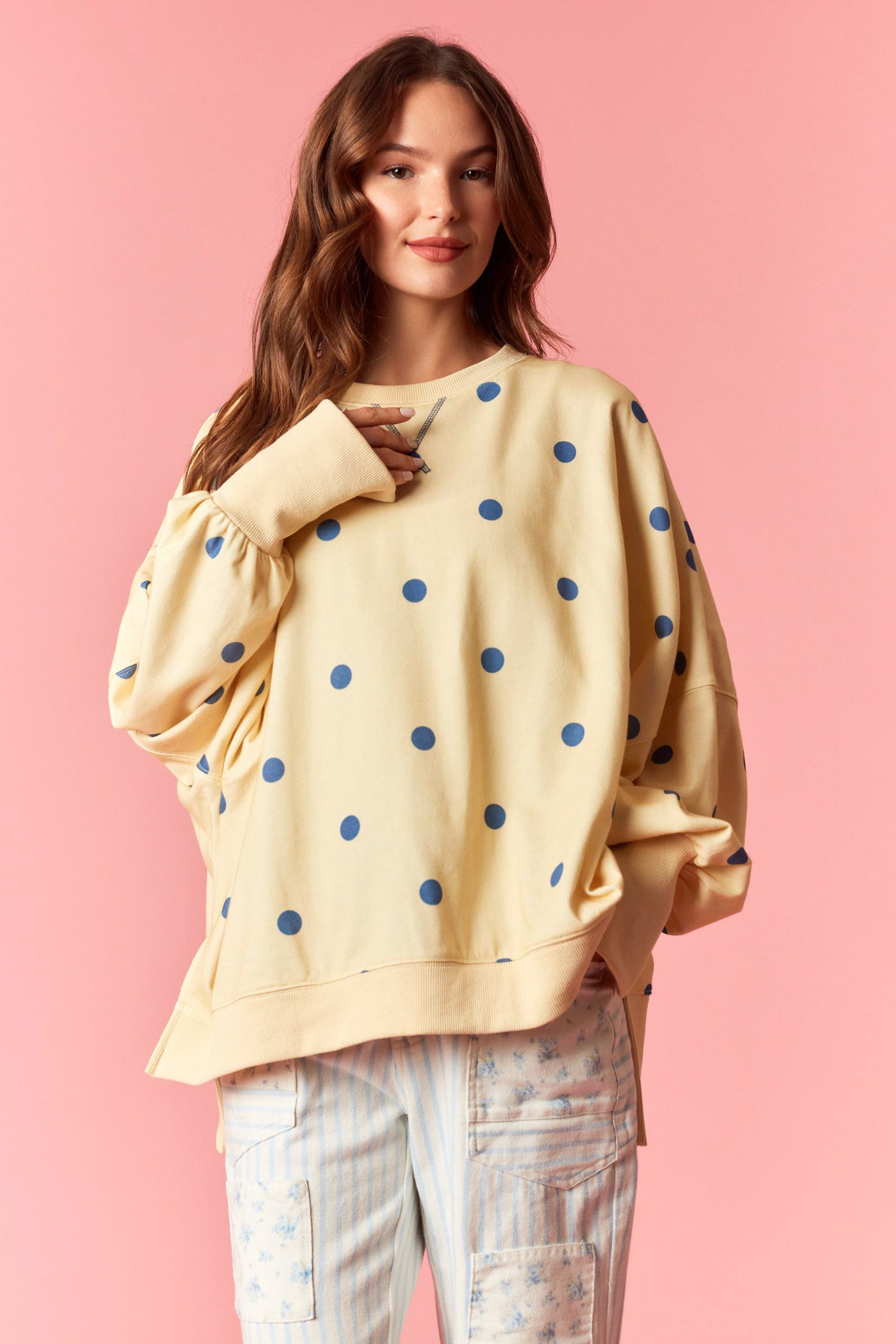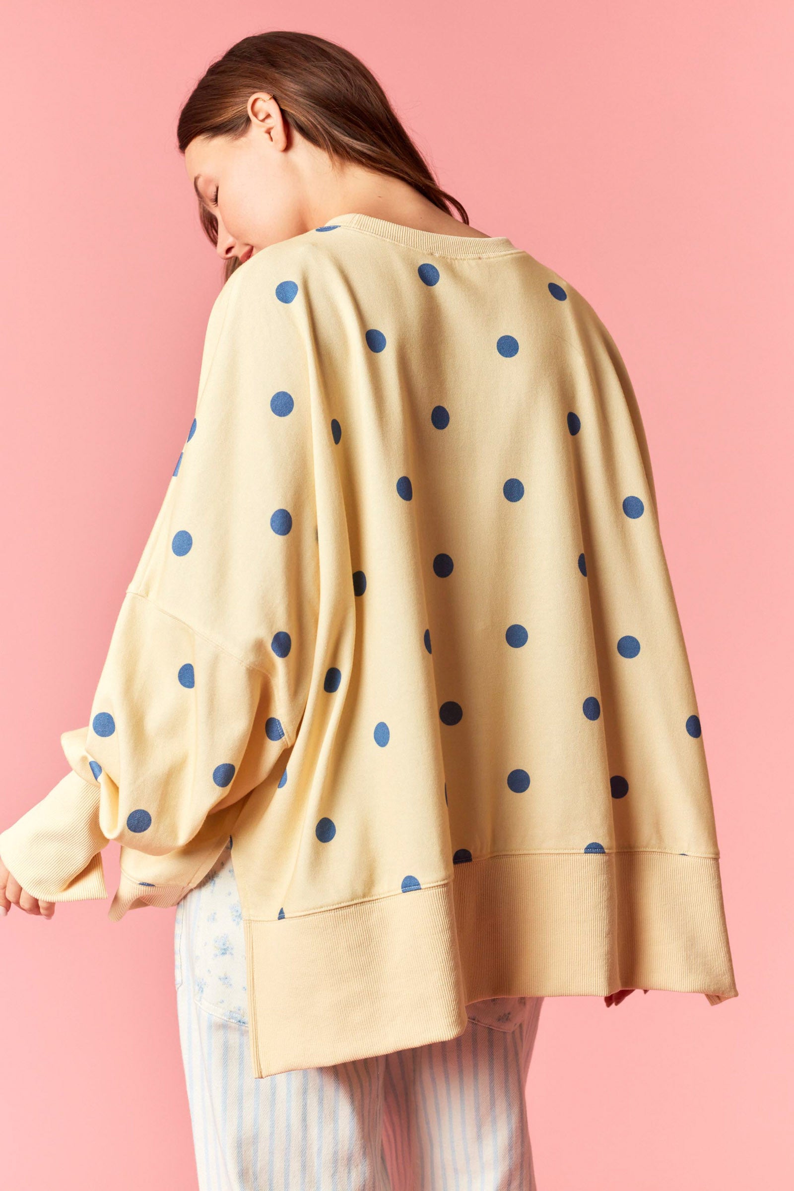 This relaxed-fit polka dot pullover is the perfect mix of cozy and fun. Featuring an oversized silhouette, soft feel, and bold allover dot print, she’s one of those throw-on-and-go pieces that still feels styled.