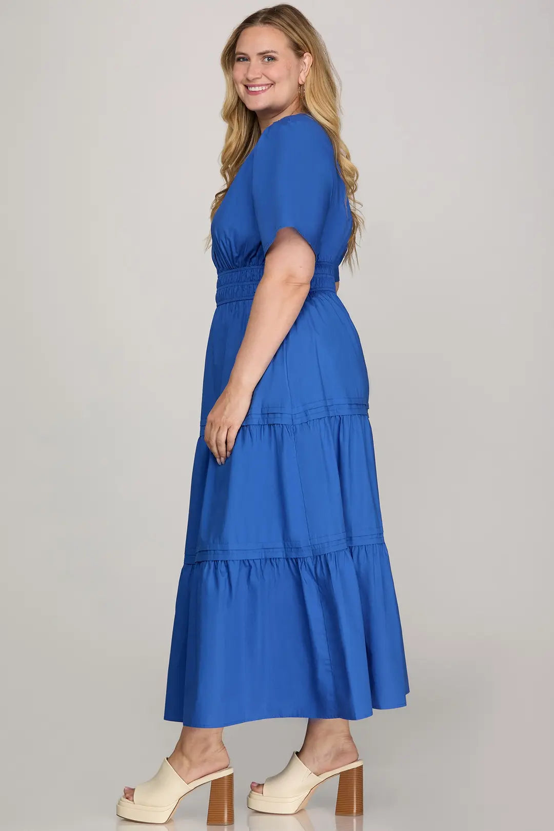 This midi dress is effortlessly classic with a fit you’ll love. The smocked waist creates a flattering shape without feeling restrictive, while the tiered skirt adds movement and flow. It’s polished enough for work or church, but comfy enough for all-day wear—an easy yes for any season.