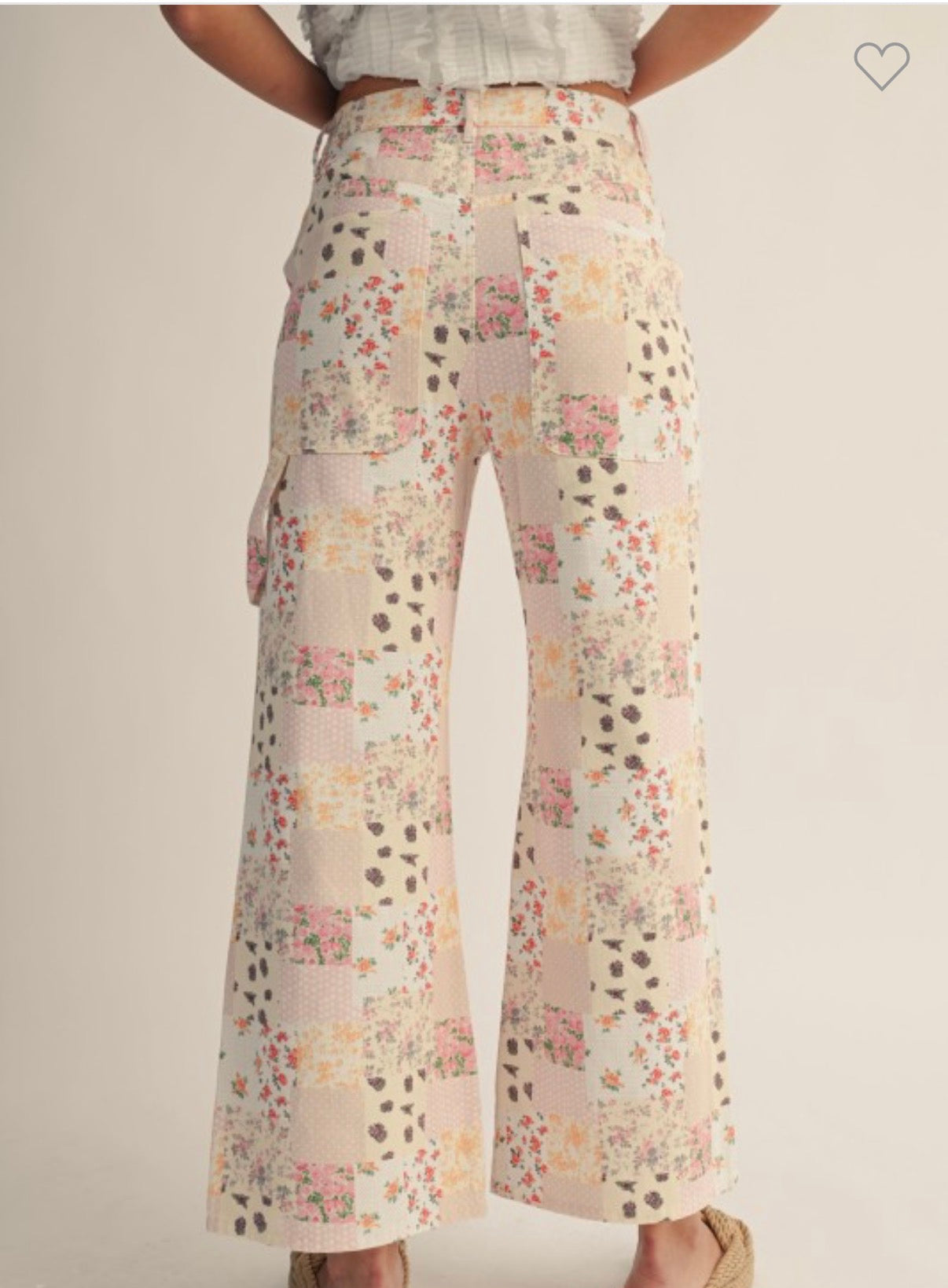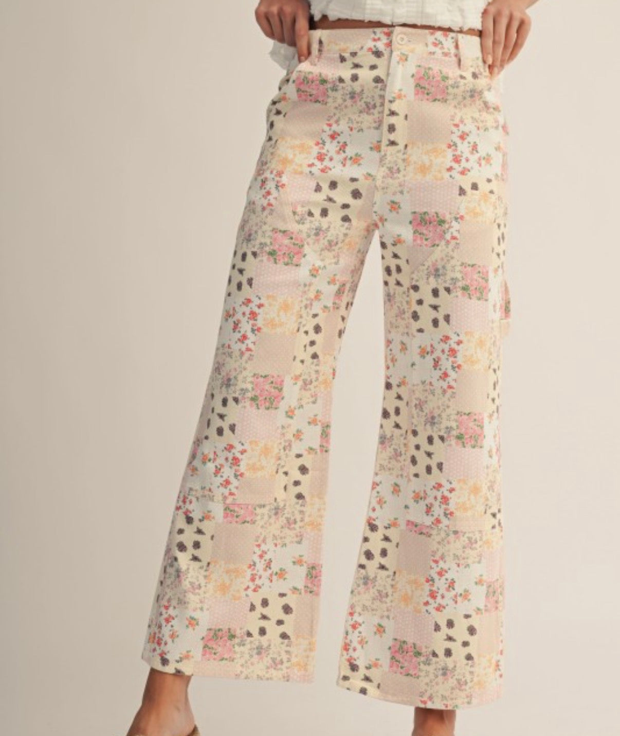 These floral patchwork pants are bold in the best way — soft pastel tones, mixed prints, and that wide-leg silhouette that instantly elevates your whole outfit. They sit high-waisted for a flattering fit and flow beautifully through the leg.