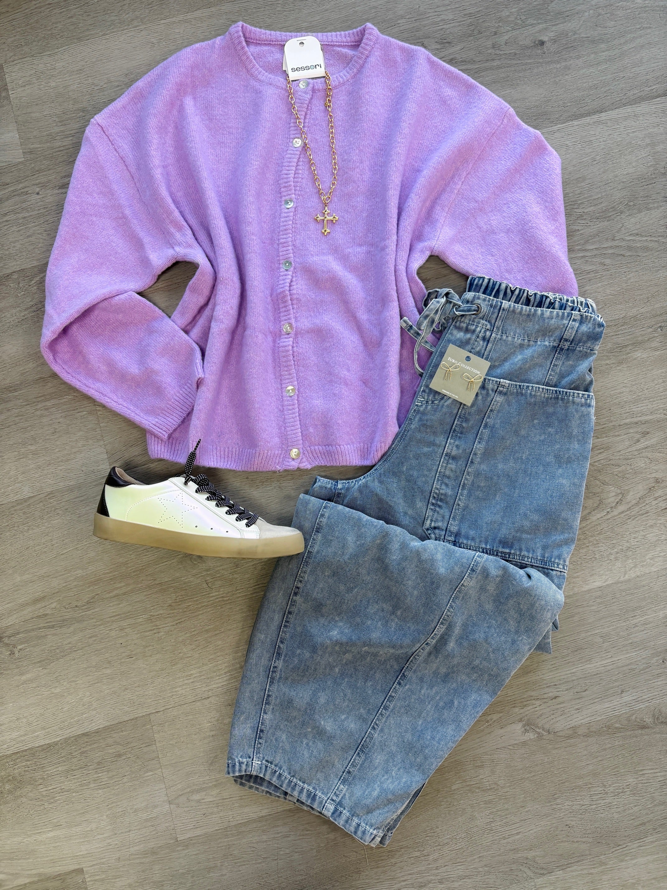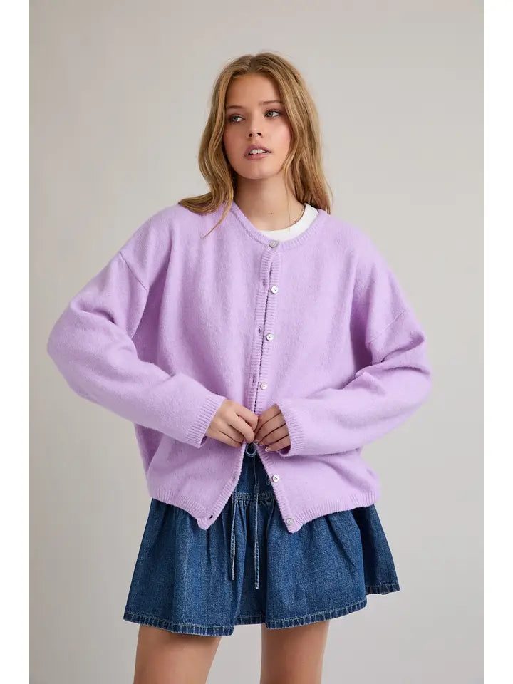 This lavender cardigan is the perfect cozy layer for every season. Featuring a soft sweater knit feel, relaxed fit, and classic button-front design, it’s an easy throw-on piece you’ll wear nonstop. The dreamy lavender shade adds the prettiest pop of color while still being super wearable with denim, leggings, or layered over a dress.