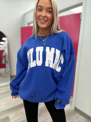 Royal Blue and White Embroidery Stitch Sweatshirt | LULU MAC