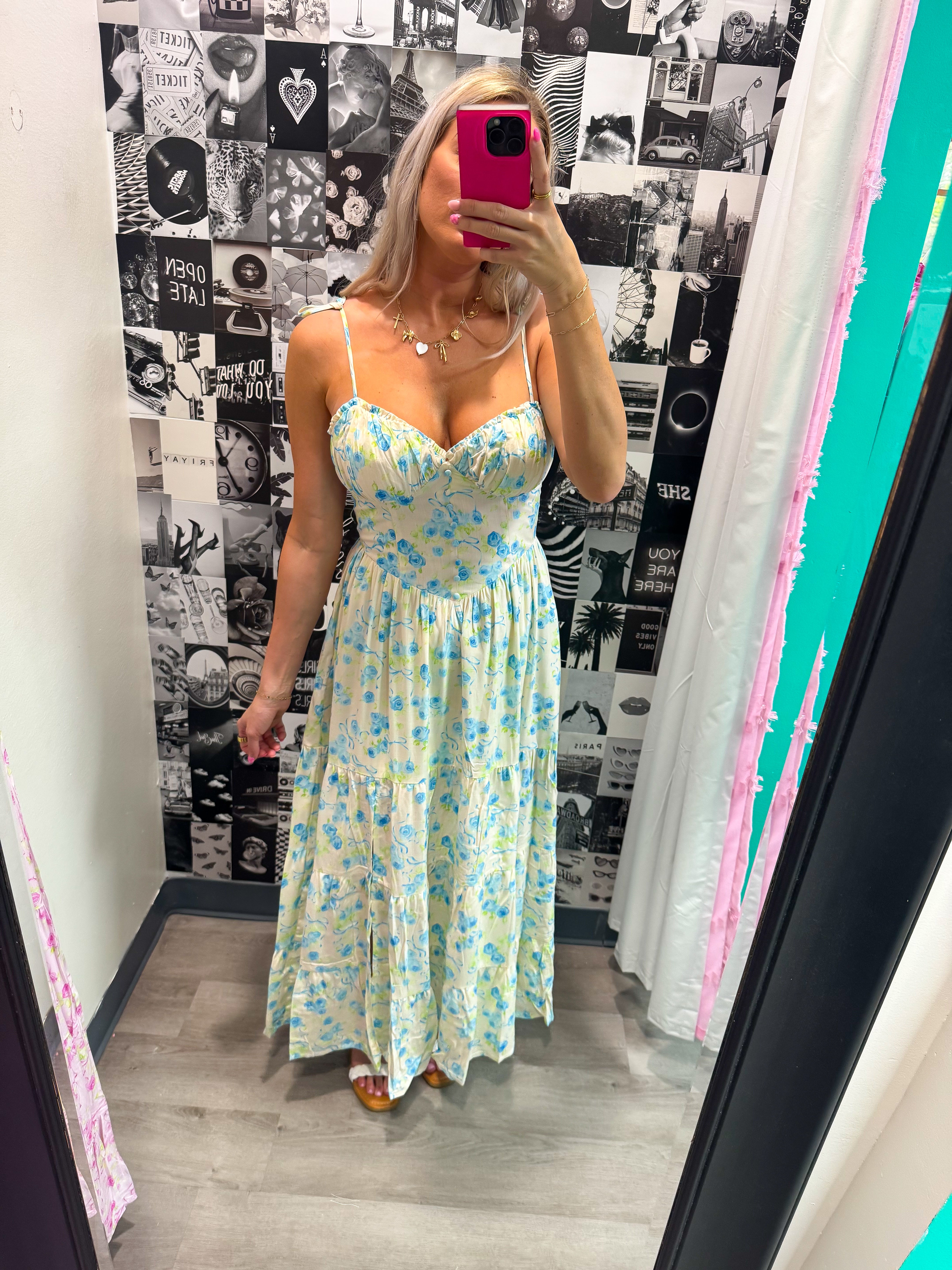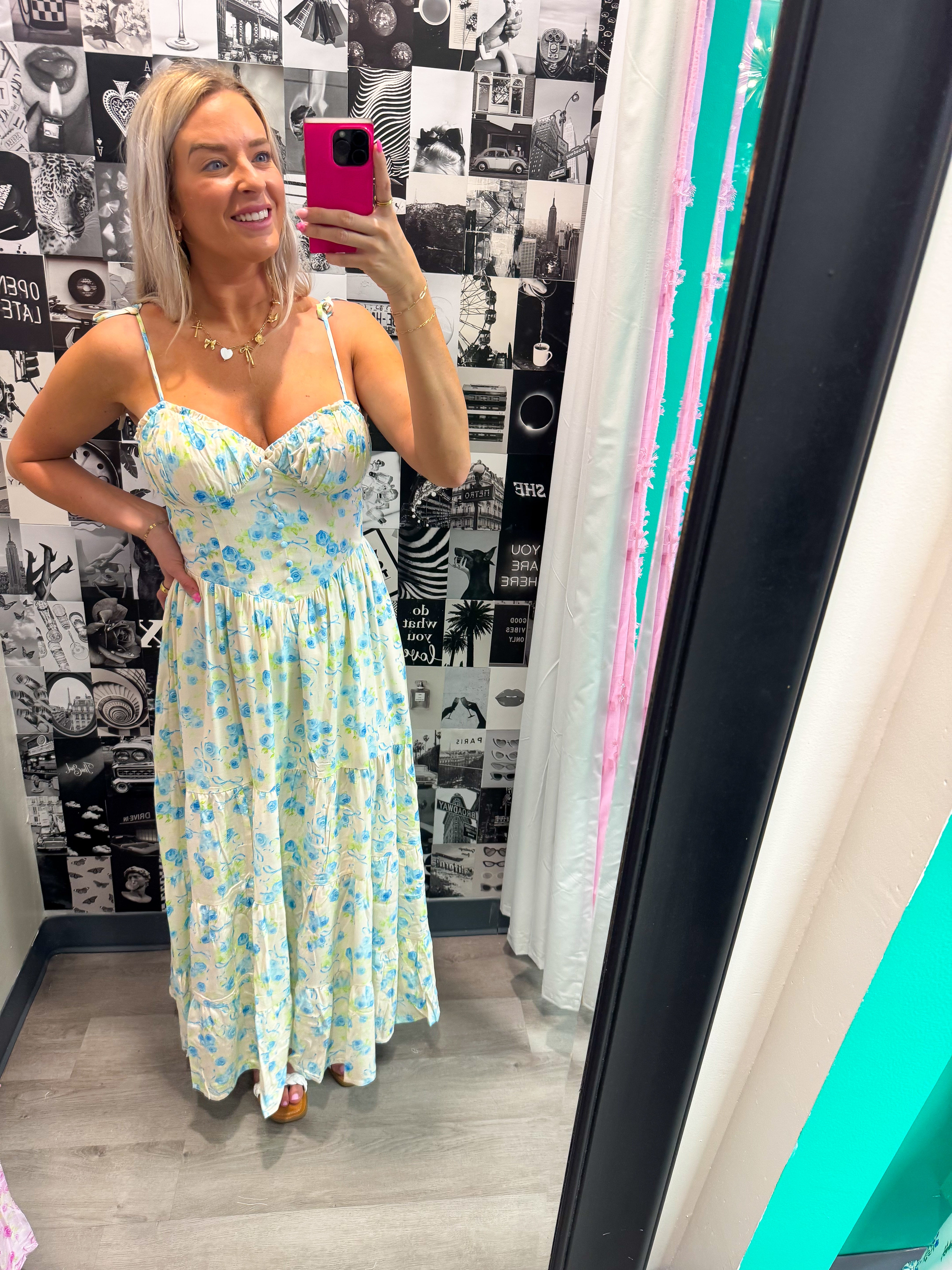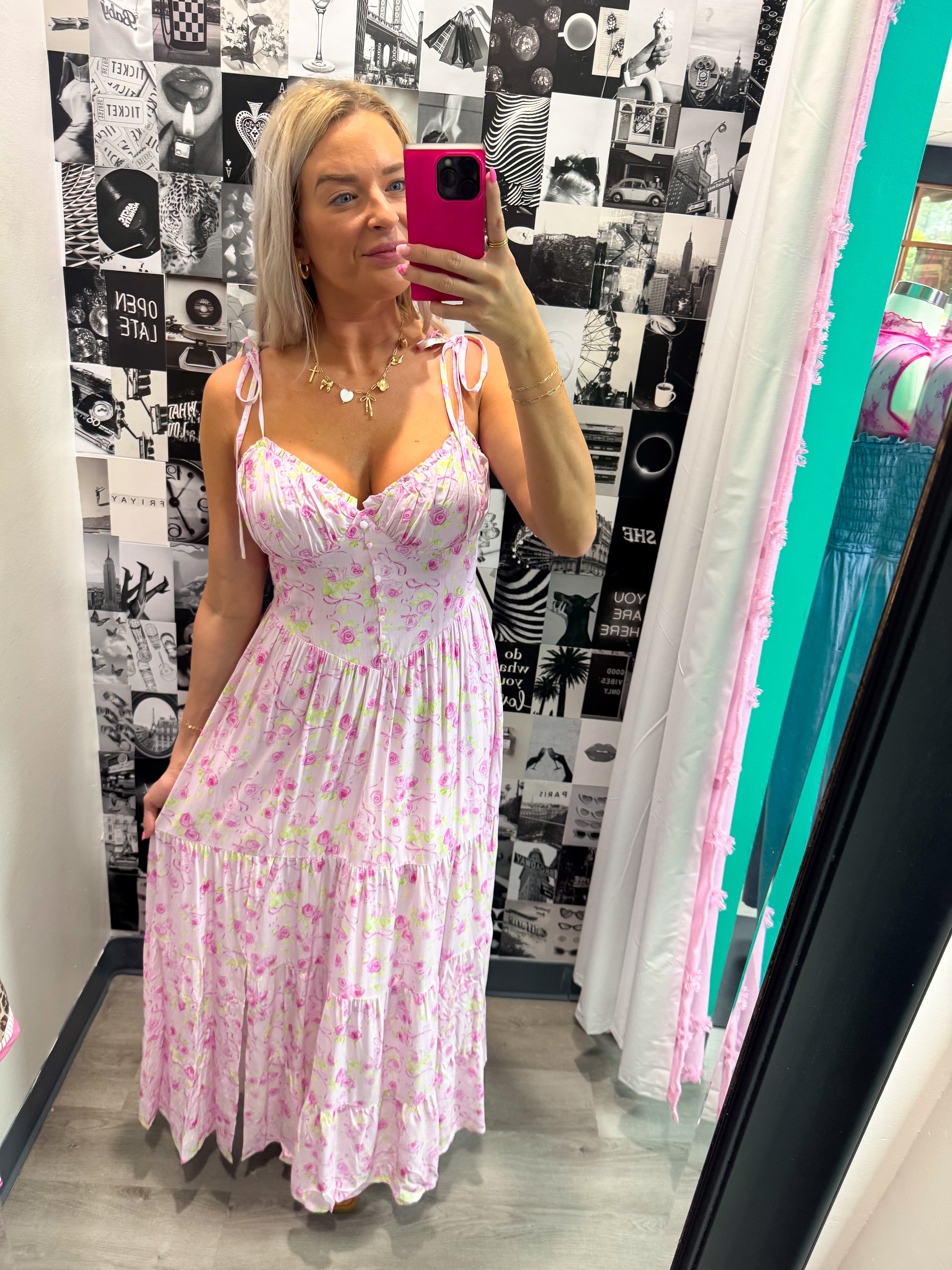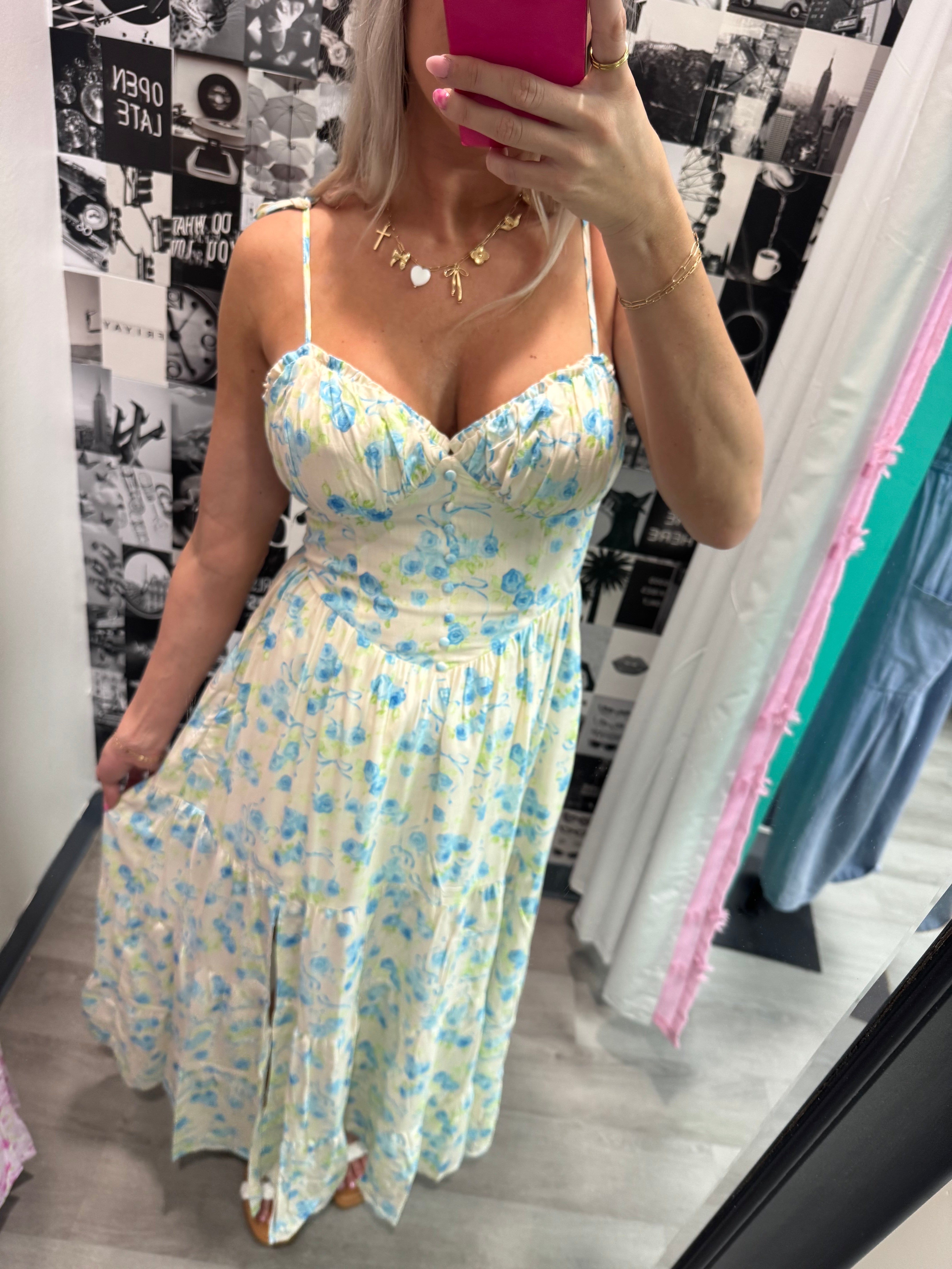 Set the tone for summer with our Quite and Impression Dress, available in two beautiful color options. This breezy maxi dress features adjustable shoulder tie straps, a sexy low-cut waist detail, and a full center button-down front. Perfect for vacation, picnics, or casual weekends. Get ready to turn heads and make a statement!