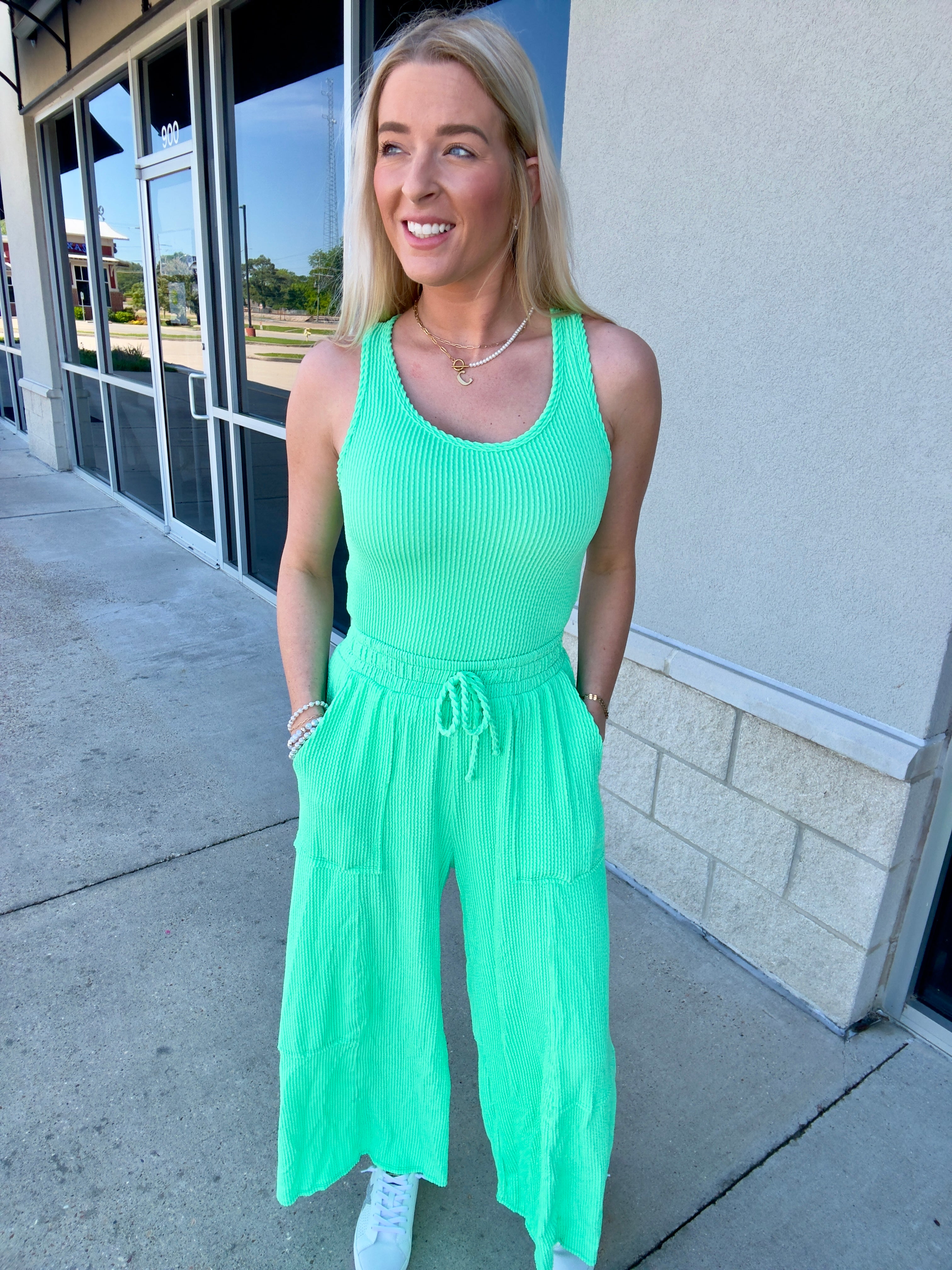 Get ready to elevate your summer style with our Sleeveless Rib Crop Top! Made from comfy ribbed fabric, this top is perfect for any occasion. Pair it with our matching shorts and pants for a complete look, or rock it with denim for a casual yet chic vibe. Versatility and comfort have never looked so good.