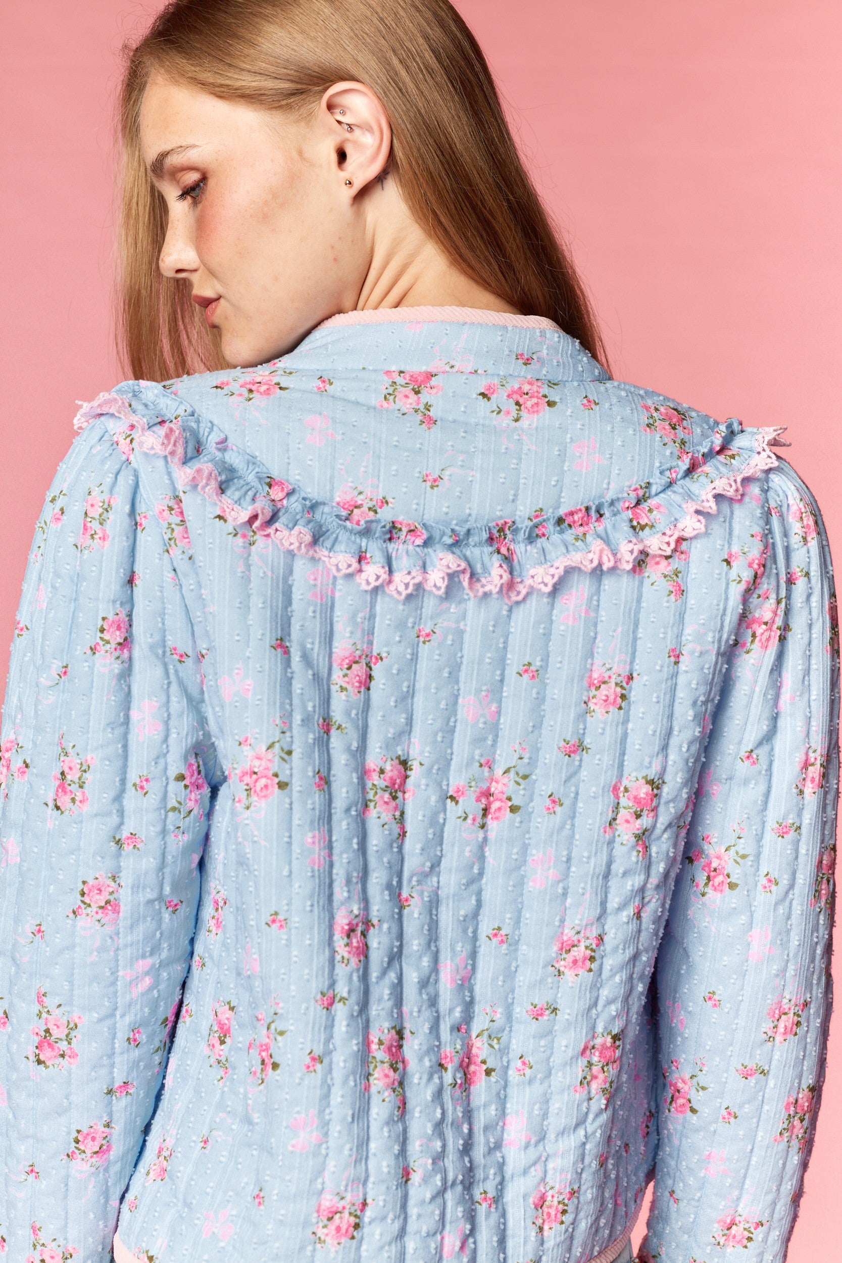 - Contrast scallop-trimmed ruffle along the front and back yoke