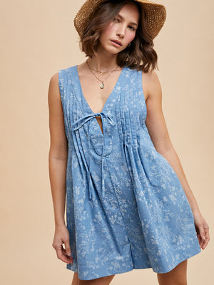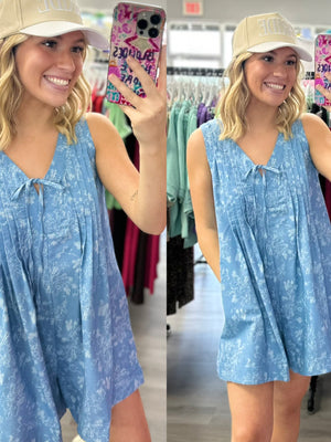 Delicate Florals Denim Romper
