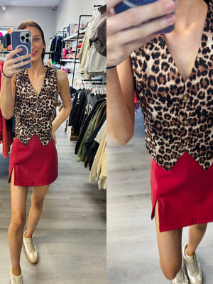 Red Faux Leather Side Slit Skort
