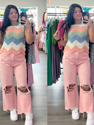 Pastel Neutral Mutli Color Waive Pointelle Sweater Tank