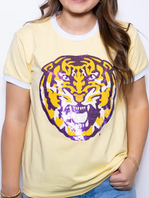 Butter Yellow Louisiana State University Tiger (Licensed) | Sequin Tee