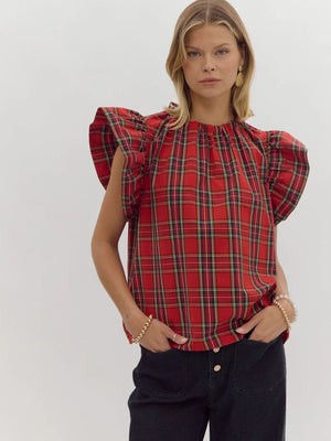 Holiday Wishes Plaid Ruffle Top | Regular and Plus
