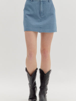 Denim Crossover Buckle Skirt
