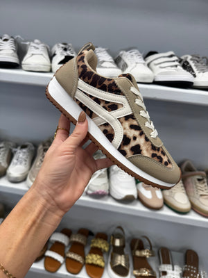 Leopard and Cream Athletic Sneakers